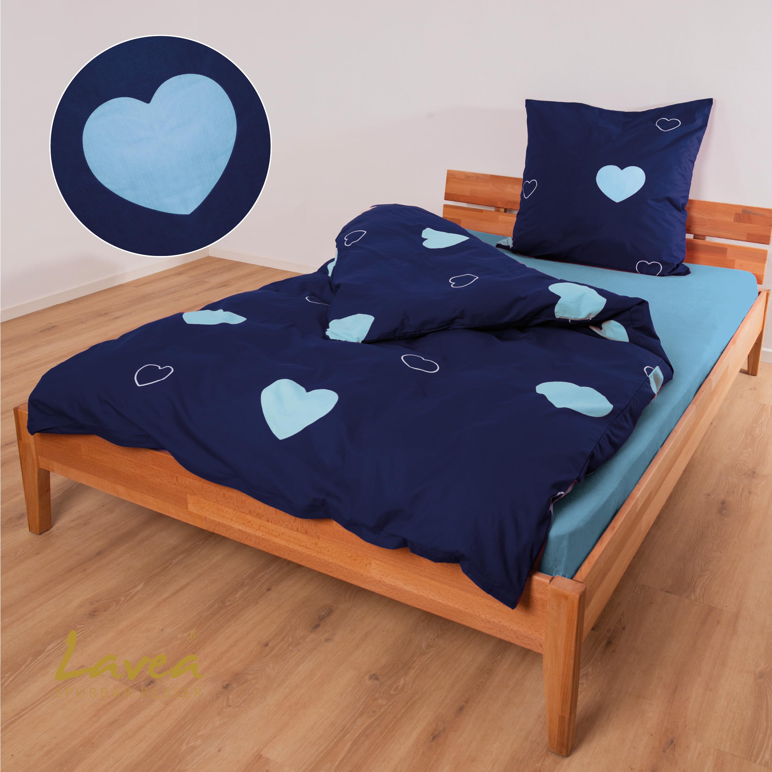 Lavea Emilio Bettwäsche Kinder Set, Kinderbettwäsche aus 100% Bio-Baumwolle, mit Herzmotiv, weiche Bezüge für Bettdecke und Kopfkissen, mit Reissverschluss, Blau Hellblau 135 x 200 cm und 80 x 80 cm