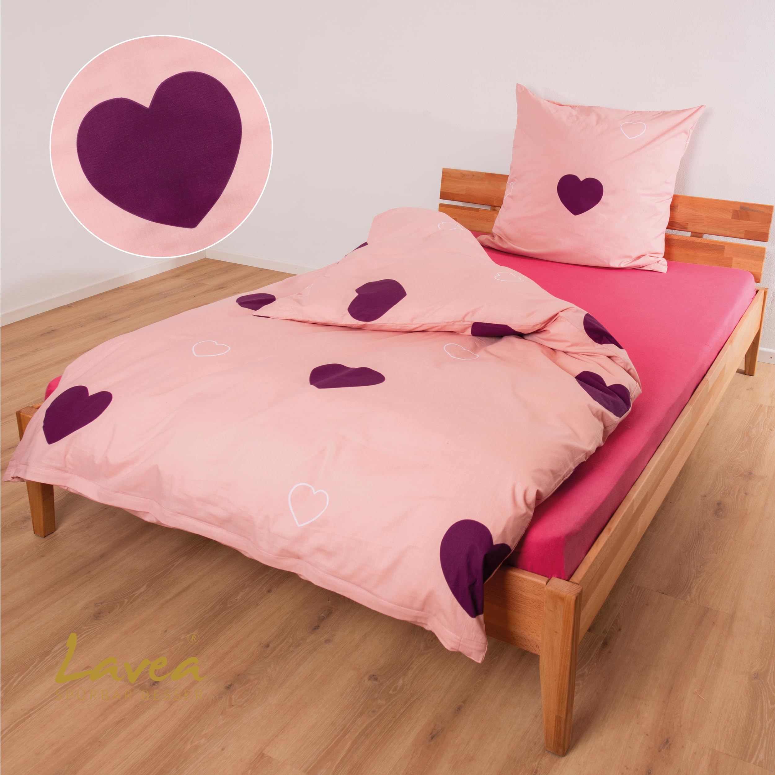 Lavea® Emilia Bettwäsche Kinder Set, Kinderbettwäsche aus 100% Bio-Baumwolle, mit Herzmotiv, weiche Bezüge für Bettdecke und Kopfkissen, mit Reissverschluss, Rosa Bordeaux 155 x 220 cm und 80 x 80 cm