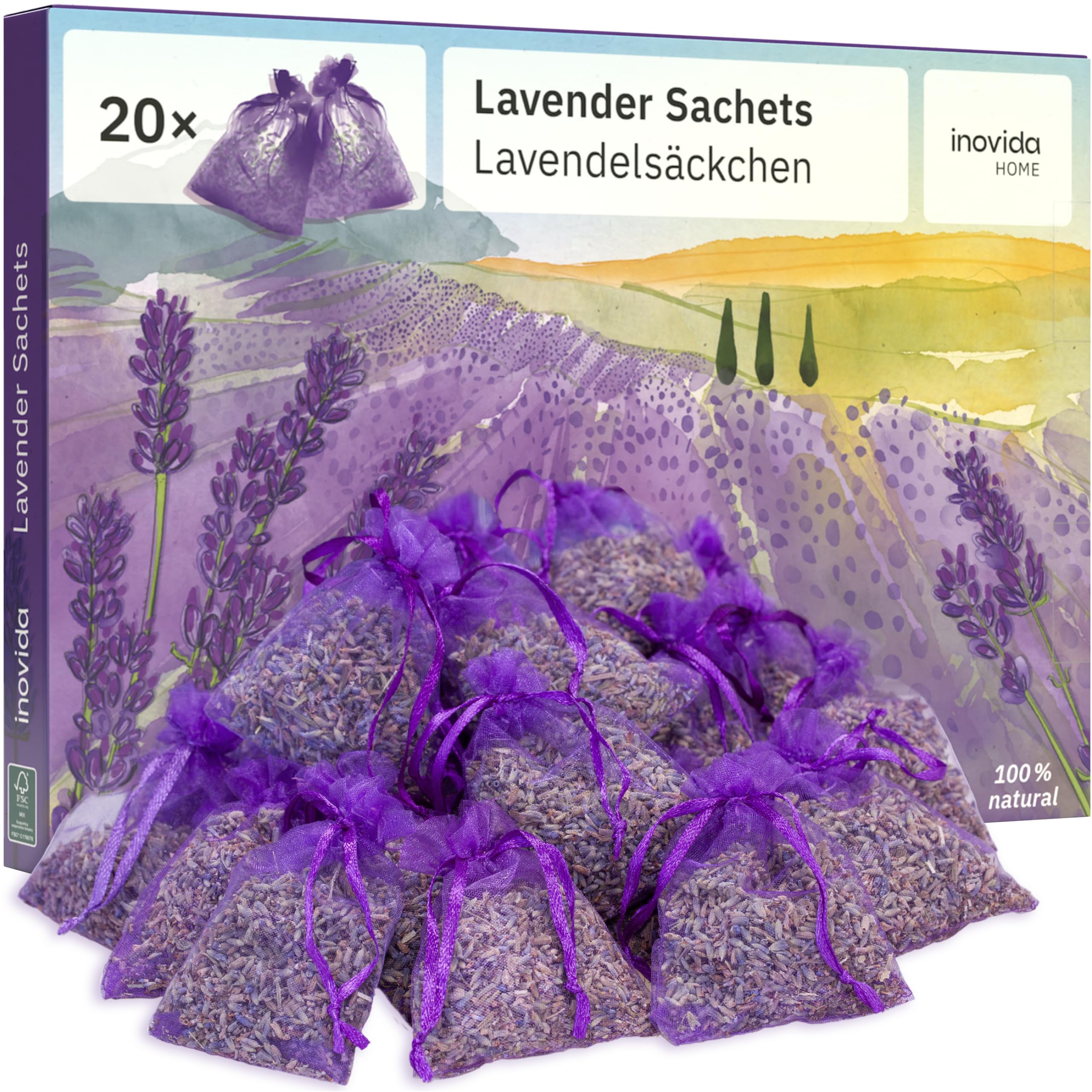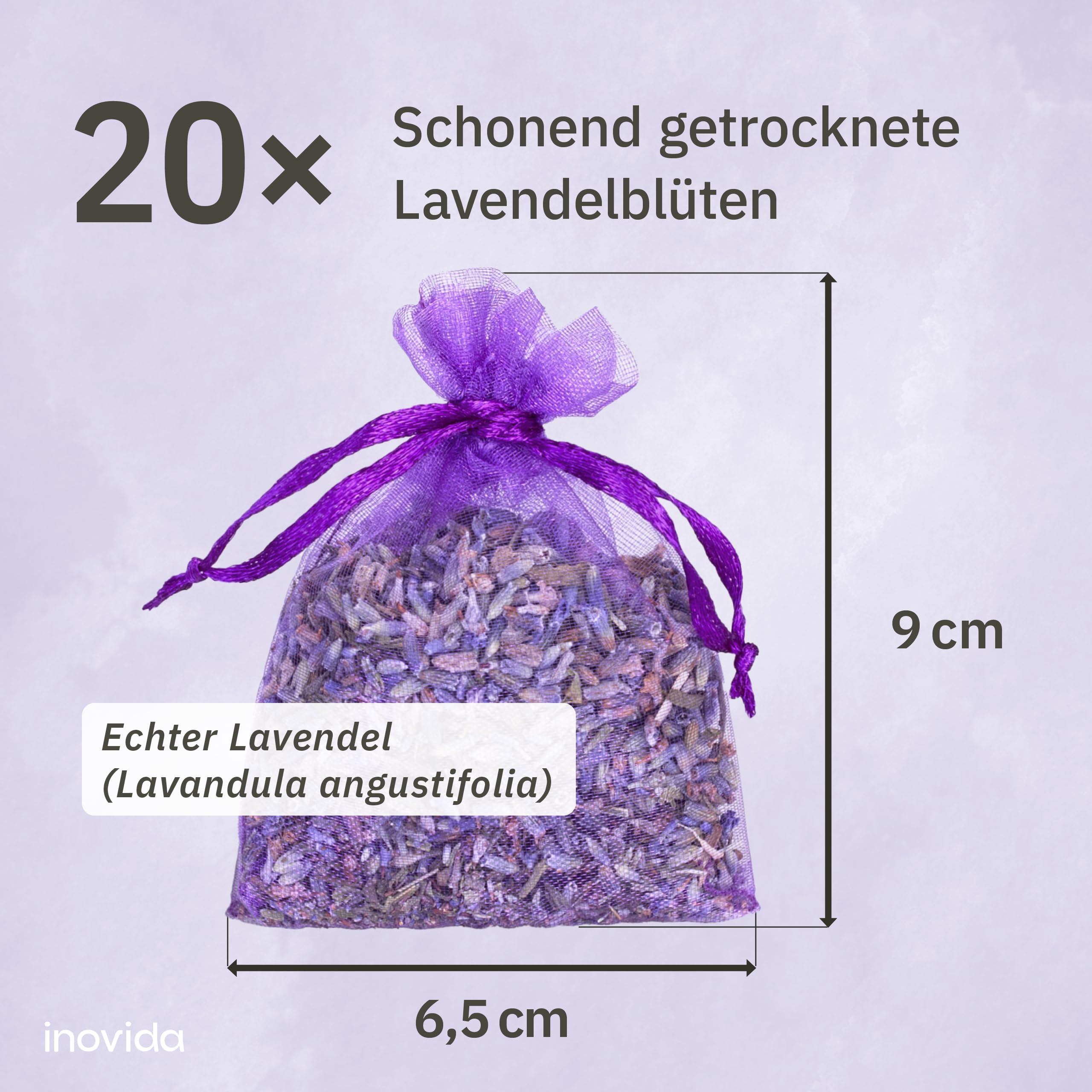 Lavendel Duftsäckchen Kleiderschrank: 20x Echter Lavendel getrocknet – Mottenschutz für Kleiderschrank bei Kleidermotten – Auto Duft und Raumduft – Schrank Duft – Inovida Lavendelsäckchen