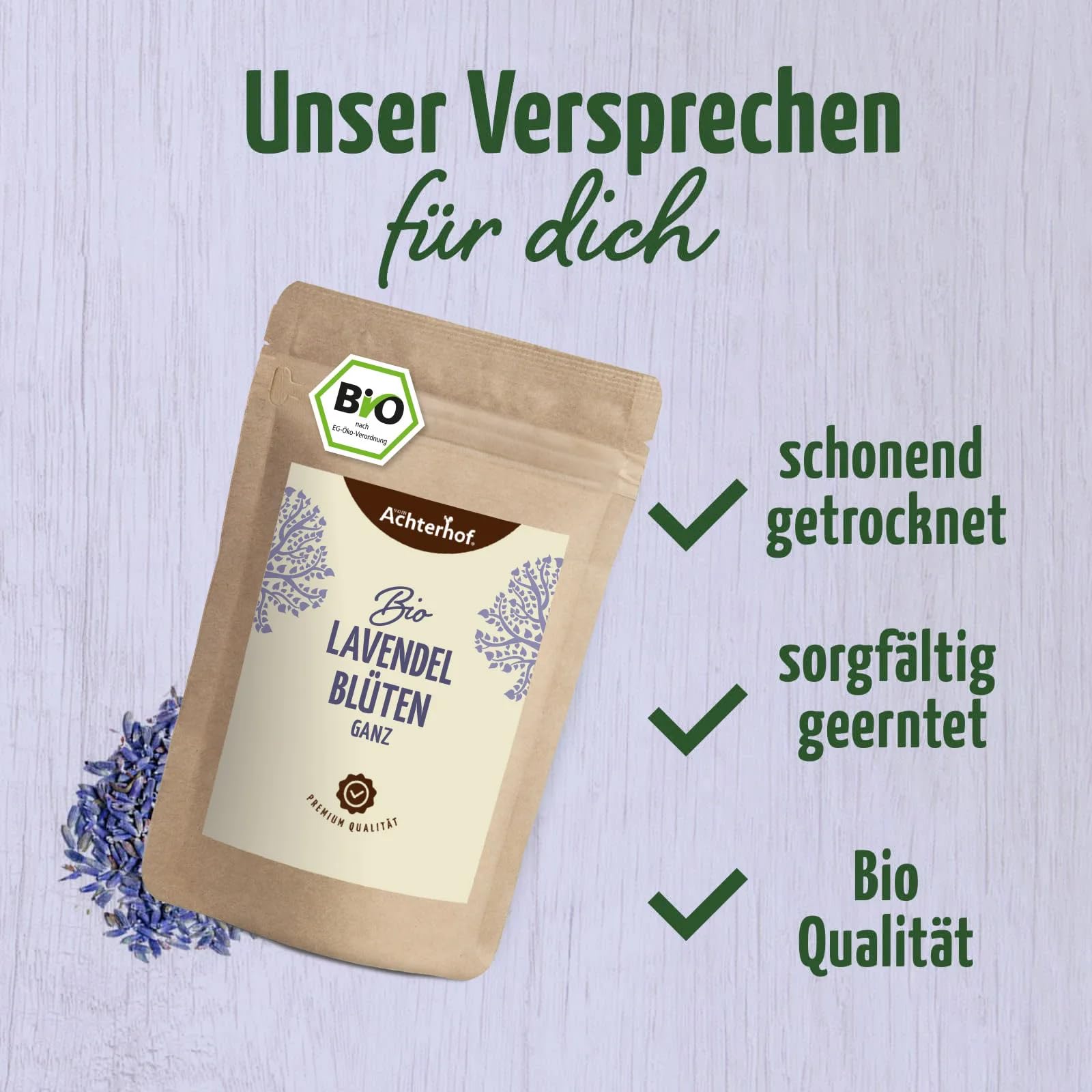 Lavendelblüten Bio getrocknet 250g | getrockneter Lavendel | Bio-Lavendel-Tee | 100% natürlich - Lebensmittelqualität | aus kontrolliert biologischen Anbau | vom Achterhof