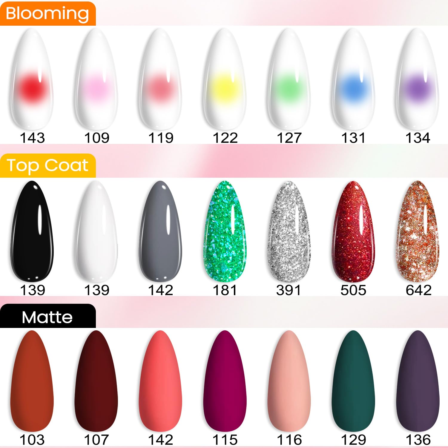 Lavender Violets UV-Gel-Nagellack Blooming Gel Set 21 Farben mit Base & Top Coat