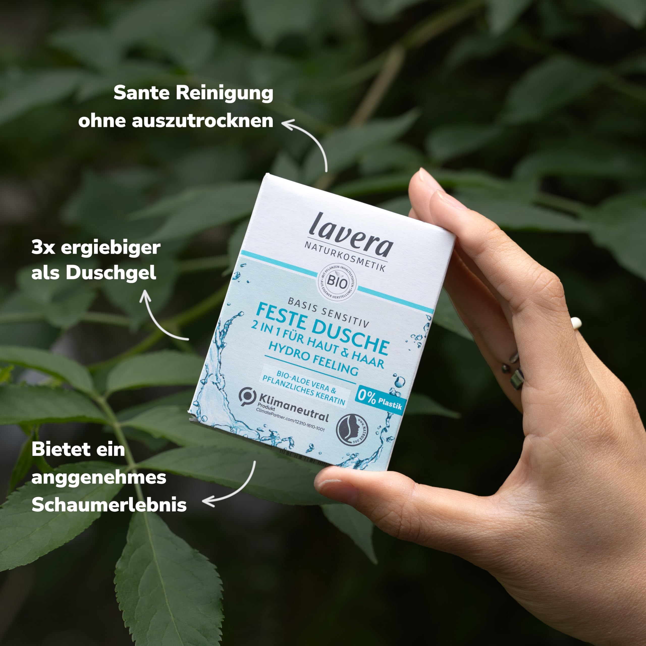 Entdecke das lavera Geheimnis für eine natürlich sanfte Körper- und Haarreinigung in fester Form. Die vegane Rezeptur mit Bio-Aloe Vera und pflanzlichem Keratin sorgt für ein angenehmes Schaumerlebnis mit einem natürlichen Duft, das Ihre Haut und Haare sanft reinigt, ohne sie auszutrocknen. Diese feste Dusche ist dreimal ergiebiger als Duschgel und eignet sich perfekt für alle, die eine nachhaltige und wirksame Pflege suchen.