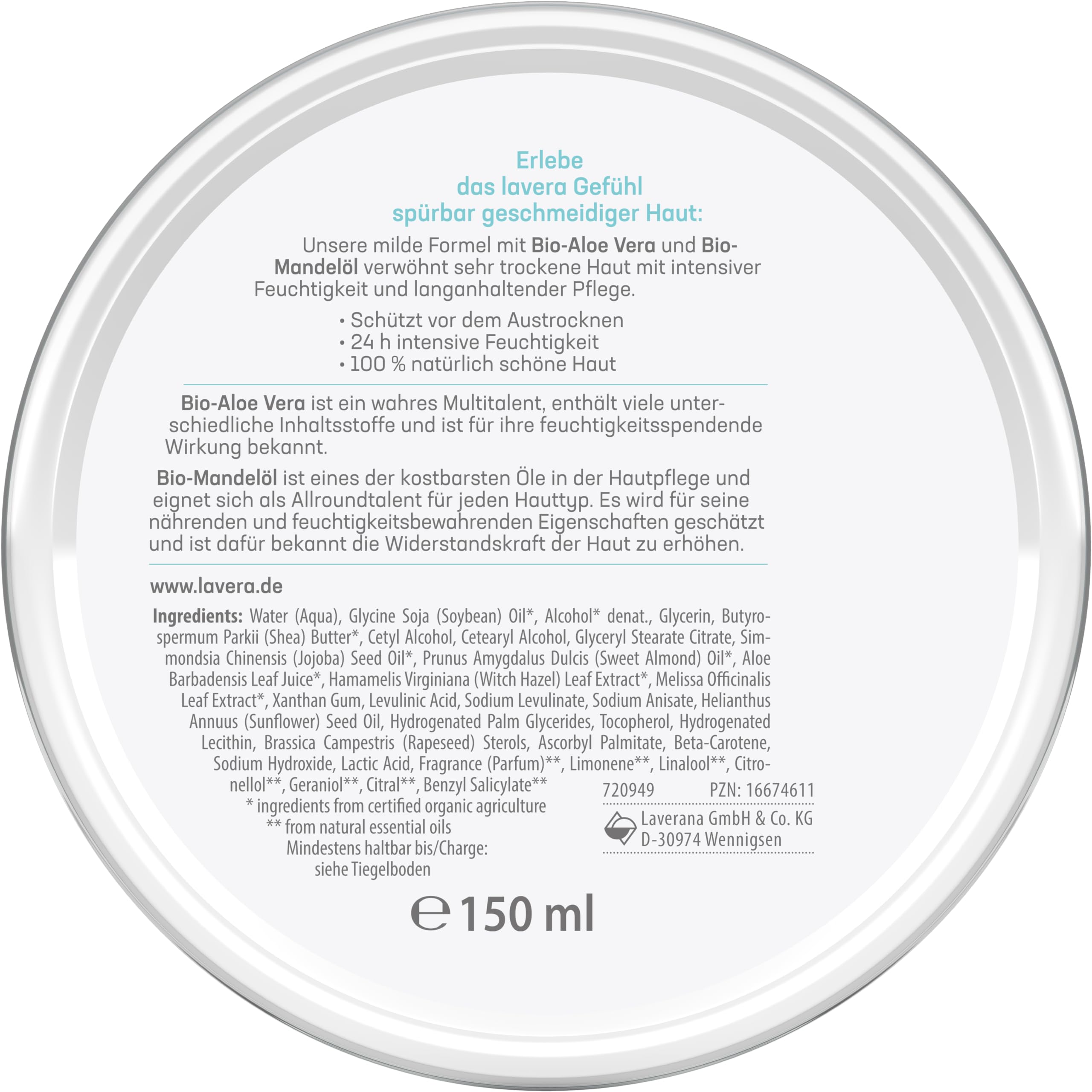 - Zero Waste Ansatz: Nachhaltigkeit wird bei lavera grossgeschrieben. Sowohl der Tiegel als auch der Deckel sind vollständig recyclingfähig.