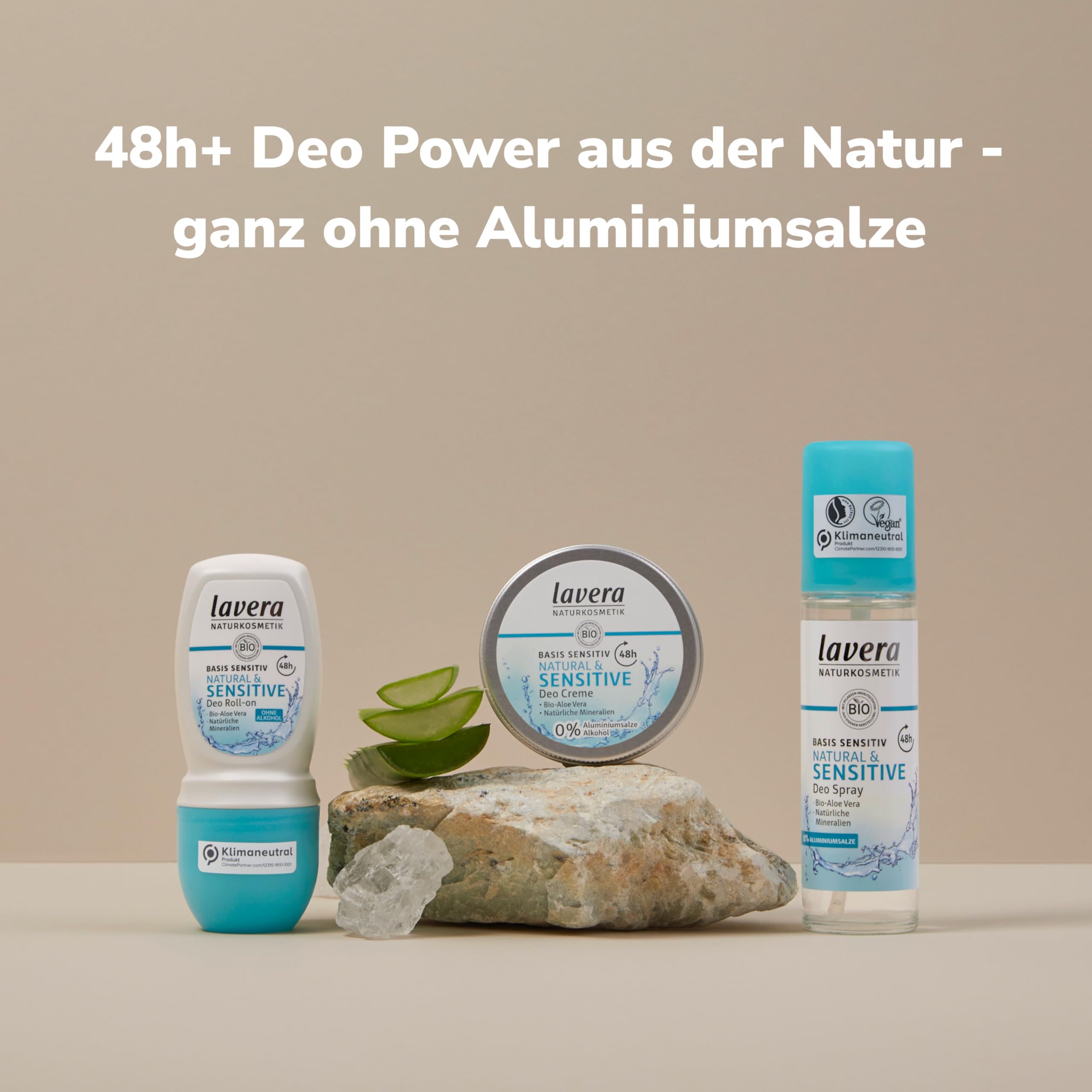 lavera, Deo Spray basis sensitiv NATURAL SENSITIVE 48 h vegan Naturkosmetik BioAloe Vera Natürliche Mineralien ohne Aluminium milde Rezeptur 48 Stunden Deo Schutz 75 ml (Packung mit 5)