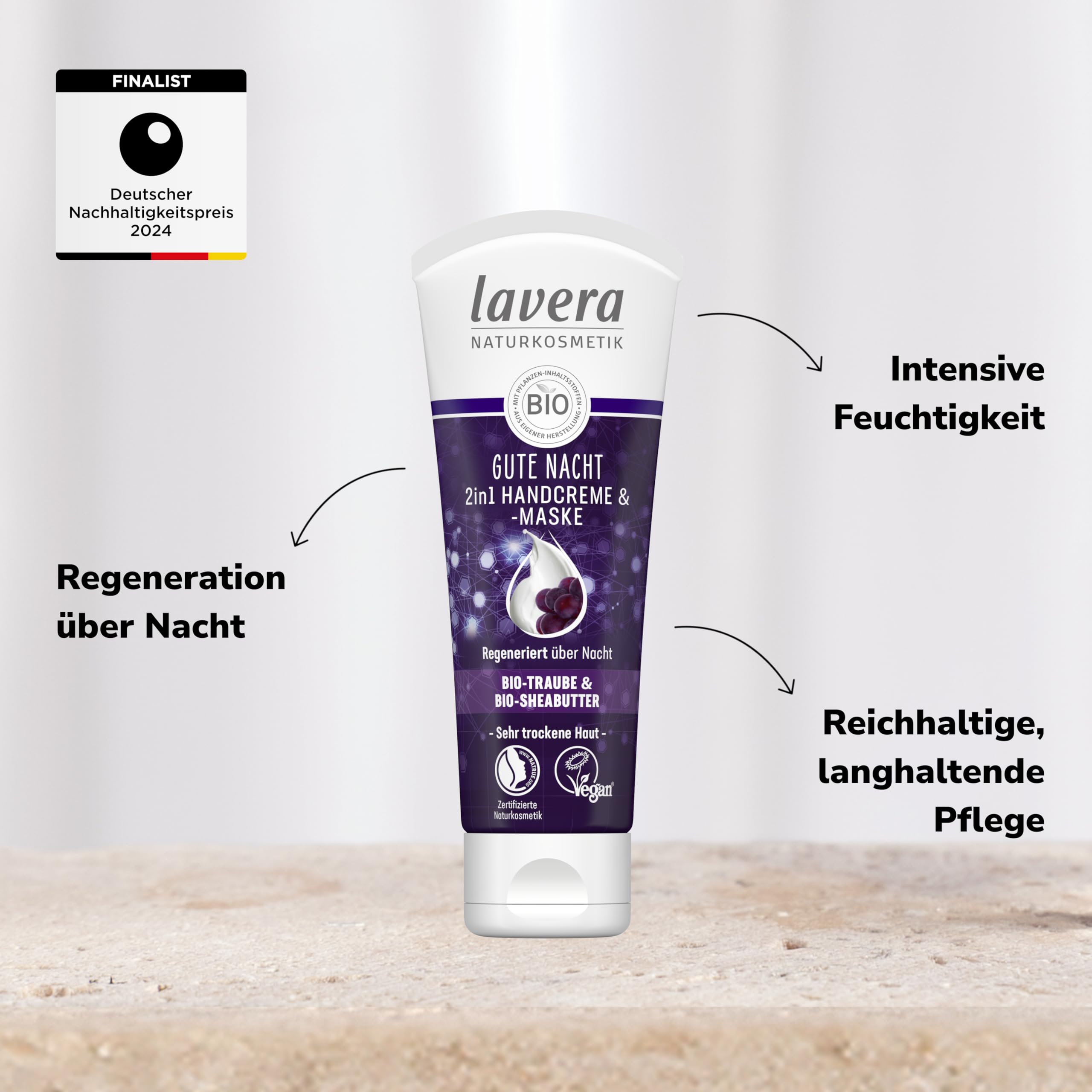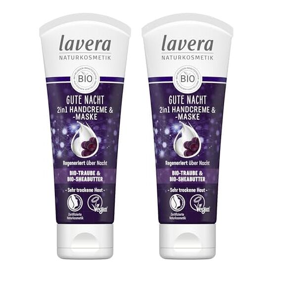 lavera Gute Nacht 2in1 Handcreme & -maske - zertifizierte Naturkosmetik - vegan - Bio Traube & Bio Shea Butter - 75ml (Packung mit 2)