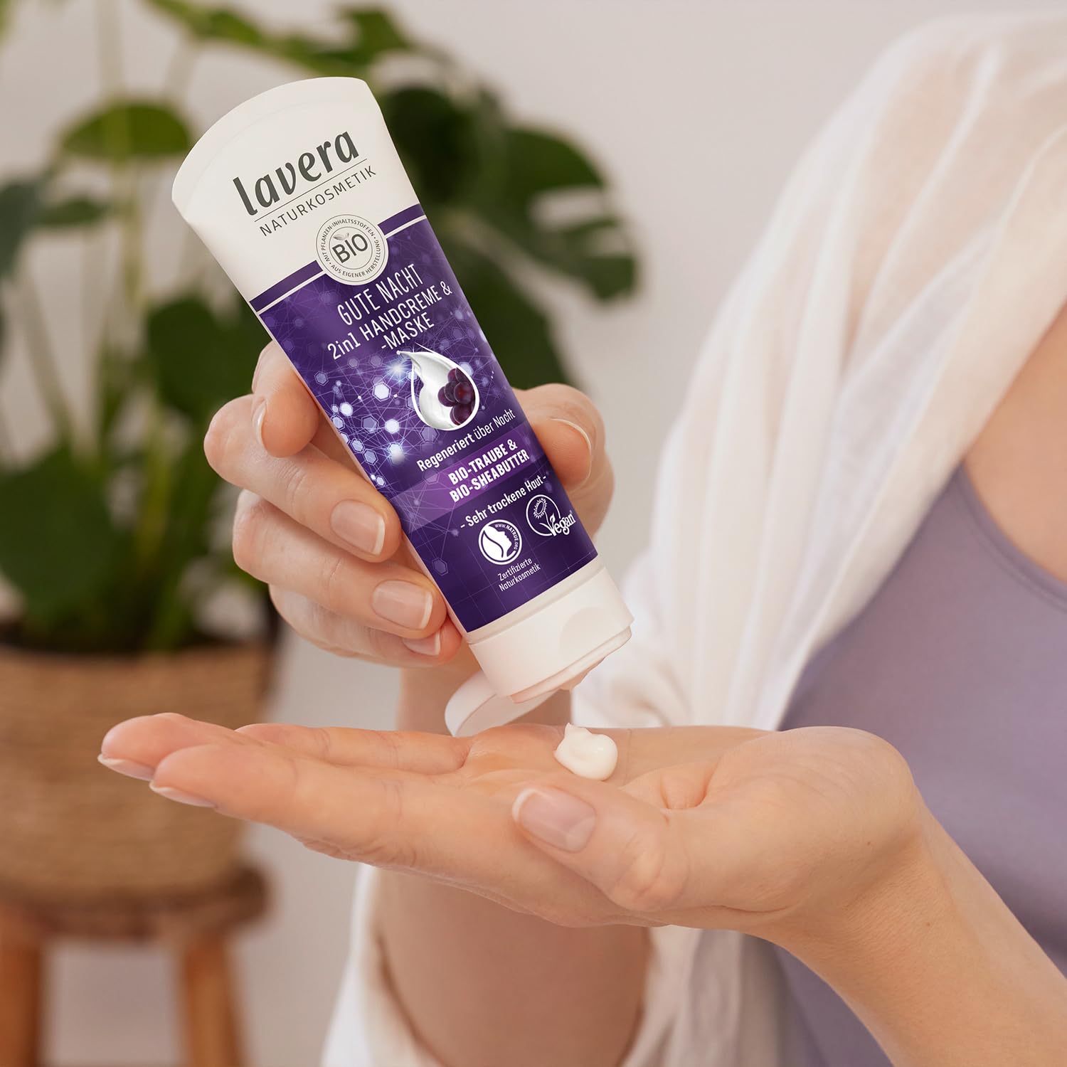 lavera Gute Nacht 2in1 Handcreme & -maske - zertifizierte Naturkosmetik - vegan - Bio Traube & Bio Shea Butter - 75ml