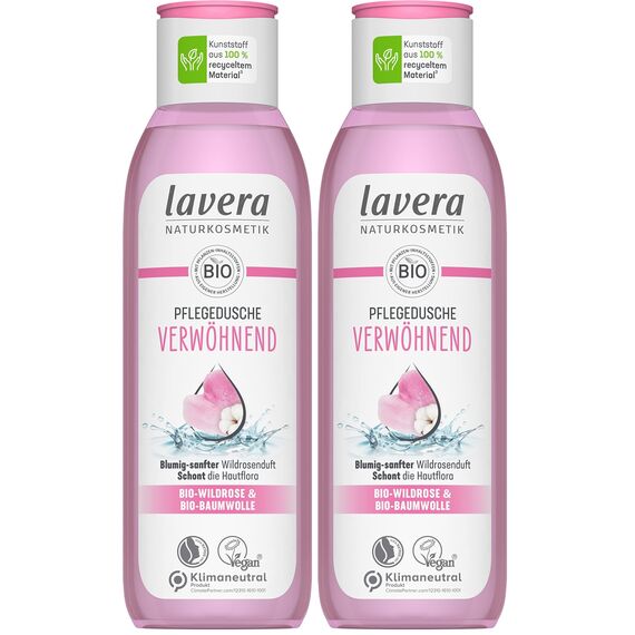lavera Pflegedusche Verwöhnend - Bio-Wildrose & Bio-Baumwolle - 250ml (Packung mit 2) – Vegan & Naturkosmetik
