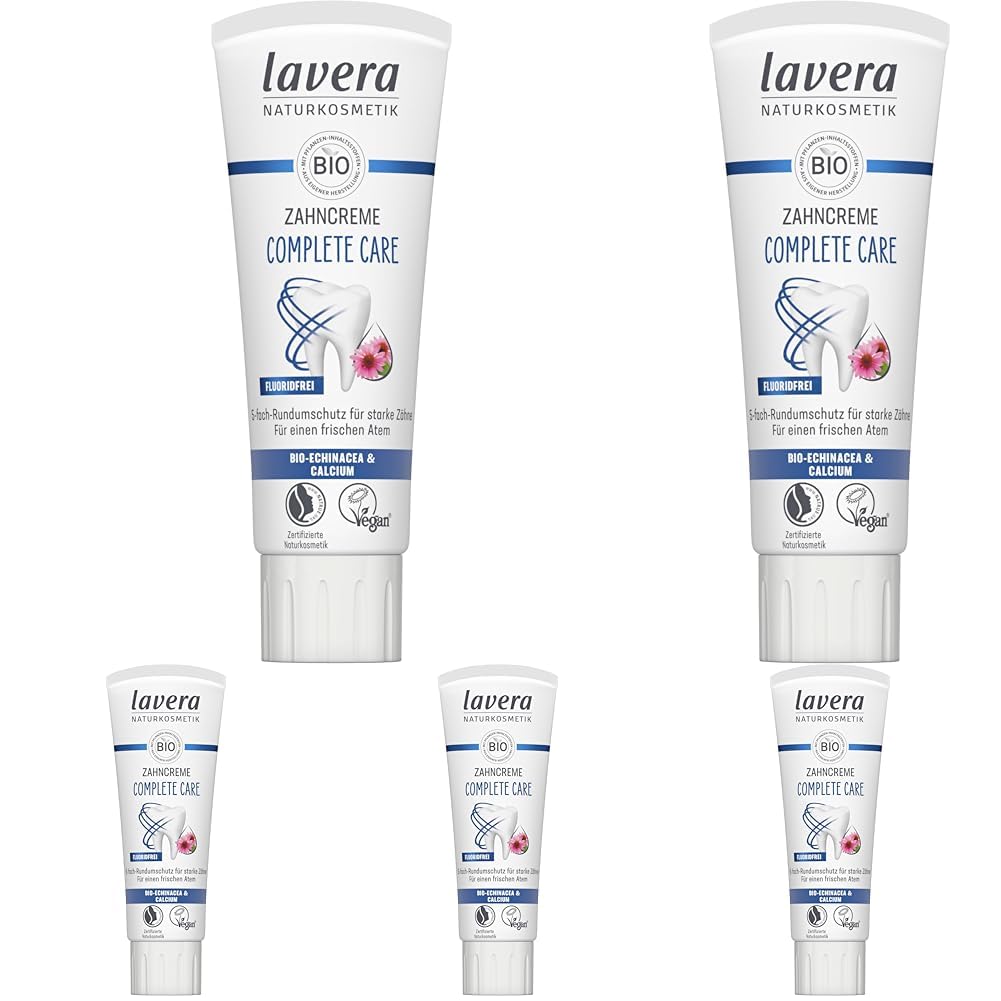 Mindestanzahl für die Bestellung von "lavera Zahncreme Complete Care Fluoridfrei - 5-facher Schutz - Bio-Pflanzenwirkstoffe - Bio Echinacea & Calcium - Vegan - Naturkosmetik - 75 ml (Packung mit 5)" ist 1.