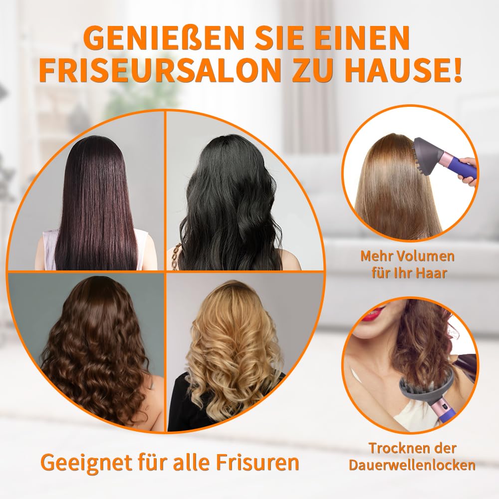 • 【Saloneffekt zuhause schaffen】Egal, ob Sie Ihr Haar locken oder ihm Volumen verleihen möchten, unser Haardiffusor ist das perfekte Werkzeug für fastt alle Ihre Haarstyling-Bedürfnisse. Sie können salonwürdige Ergebnisse bequem von zu Hause aus erzielen.