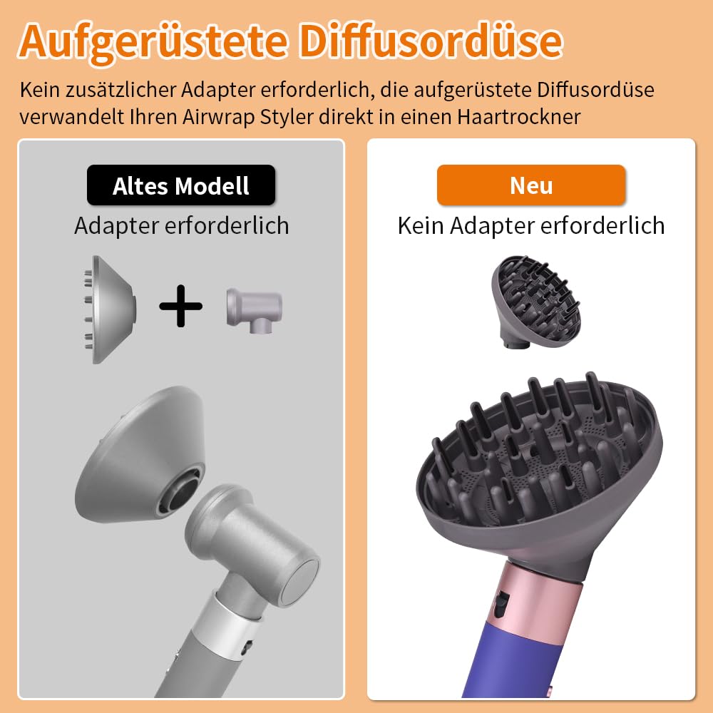 • 【Perfekte Grösse】Diffusor Aufsatz, speziell für Dyson Airwrap HS08 HS05 HS01 entwickelt, für eine präzise Passform, die fest an Ort und Stelle bleibt.