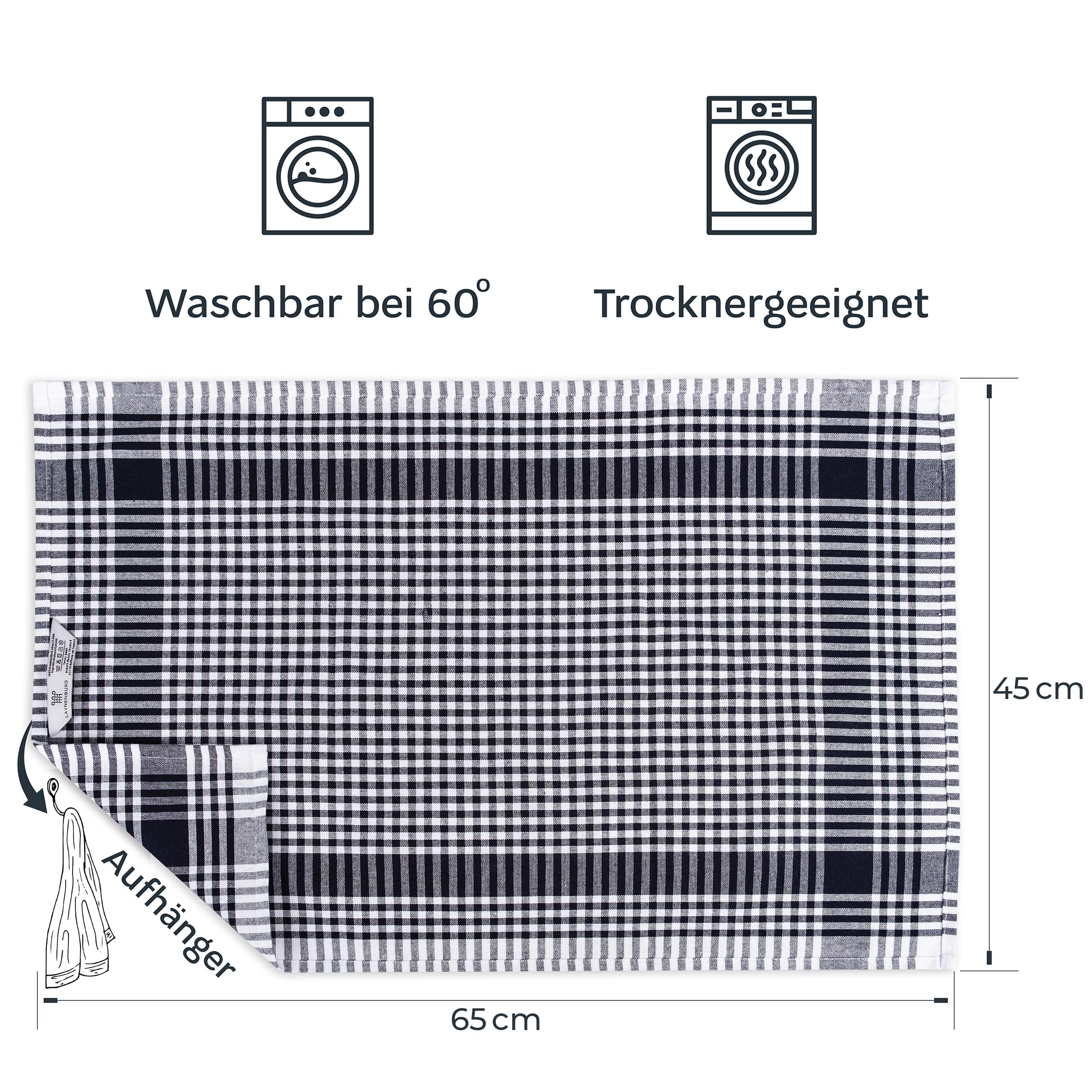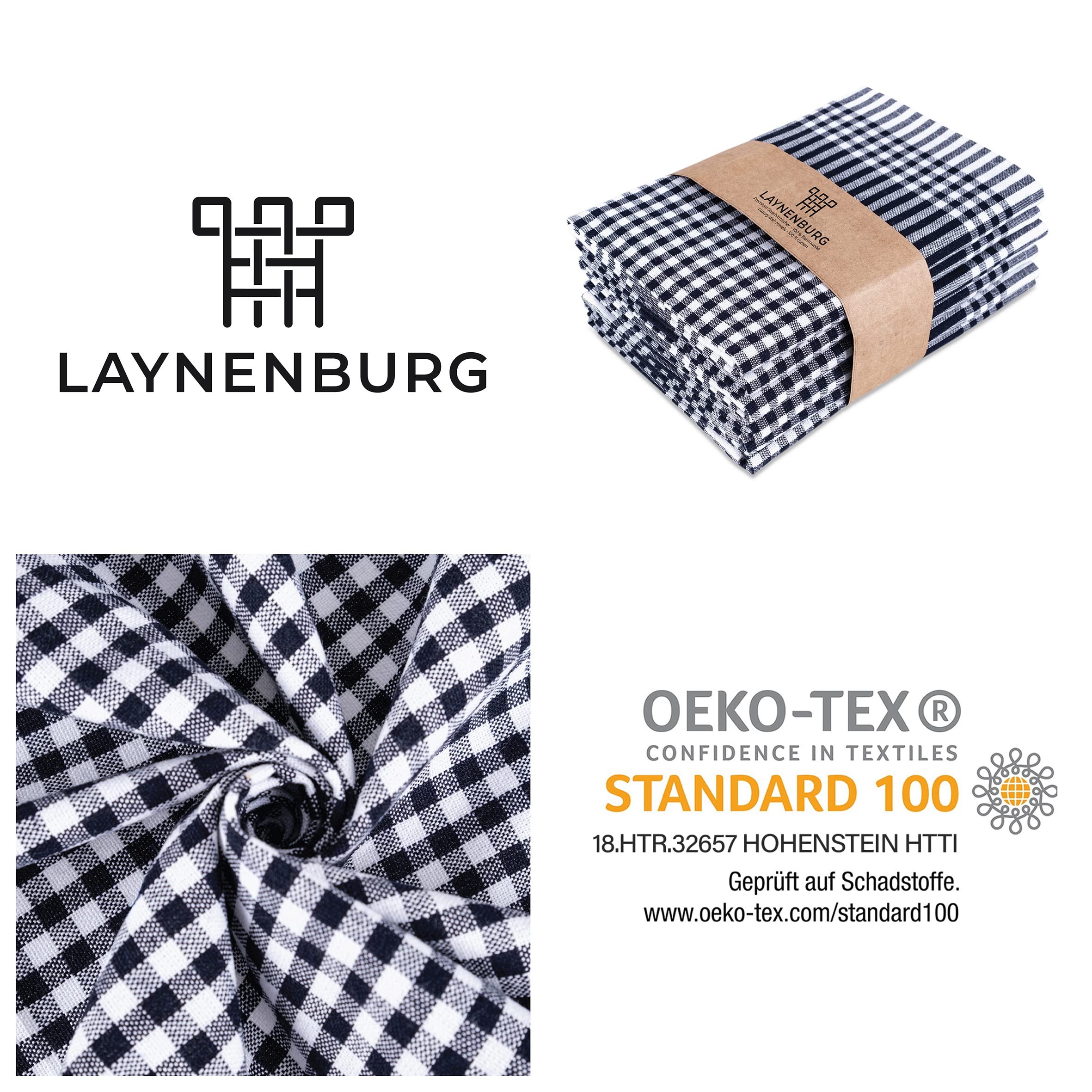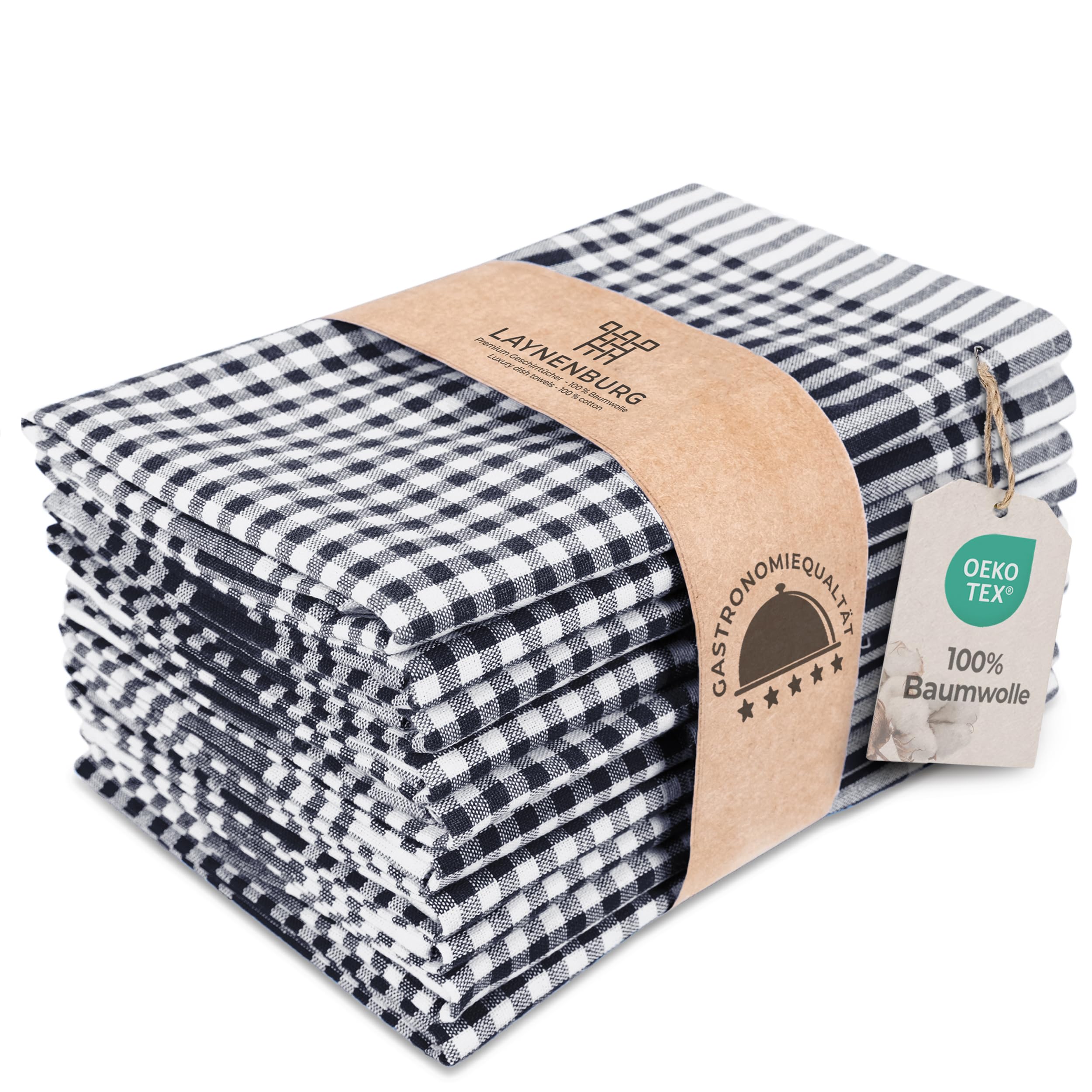 LAYNENBURG 10er-Set Premium Geschirrtücher kariert - 100% Baumwolle - 45x65 cm & Aufhänger - Oeko TEX Standard 100 - Küchentücher fusselfrei & modern - Vintage Küchenhandtücher (Anthrazit)