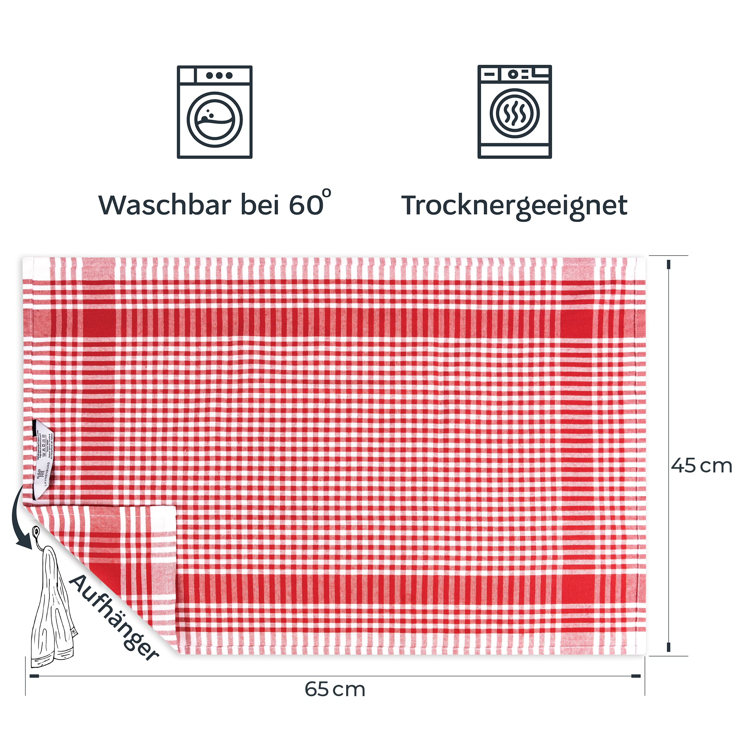 LAYNENBURG 10er-Set Premium Geschirrtücher kariert - 100% Baumwolle - 45x65 cm & Aufhänger - Oeko TEX Standard 100 - Küchentücher fusselfrei & modern - Vintage Küchenhandtücher (Rot)