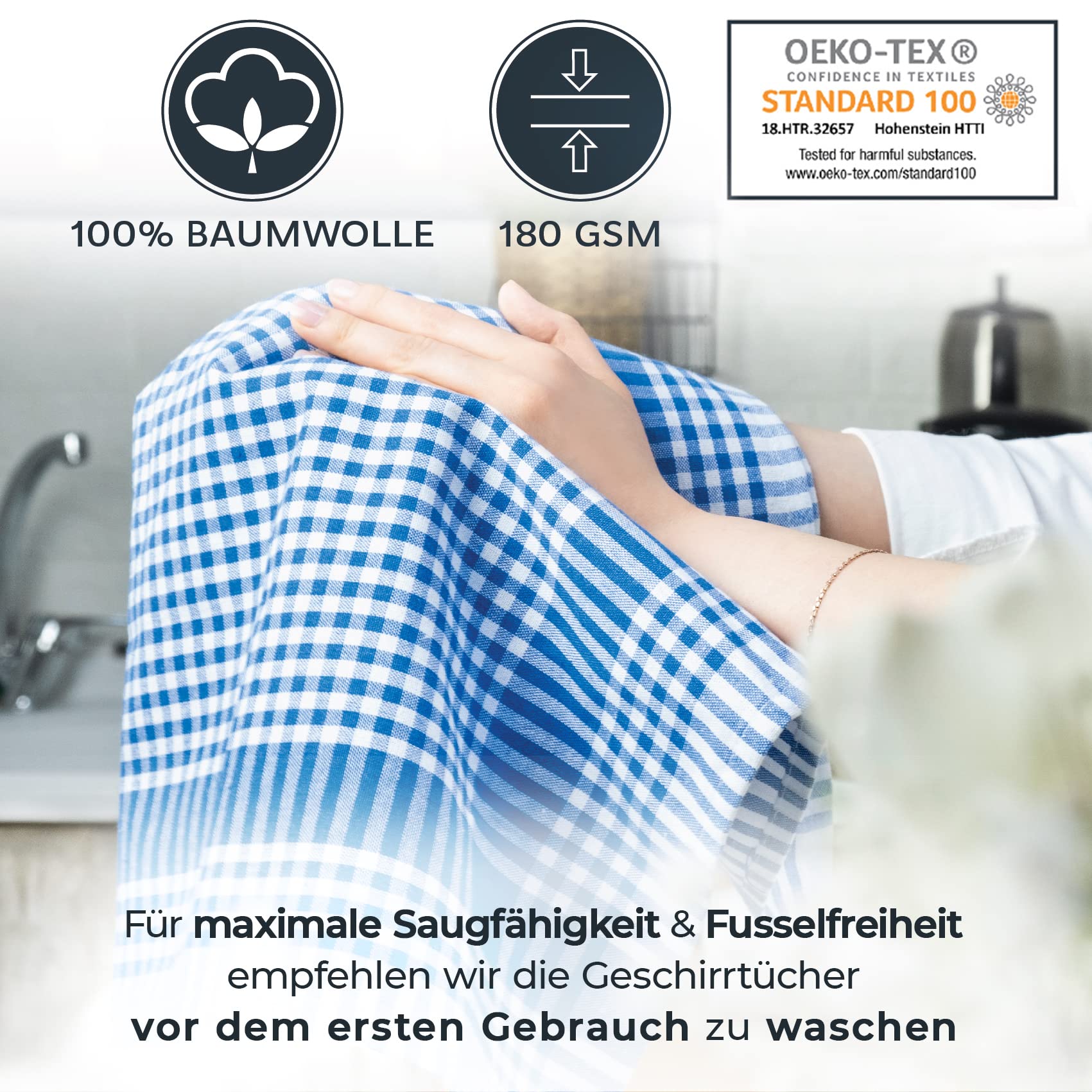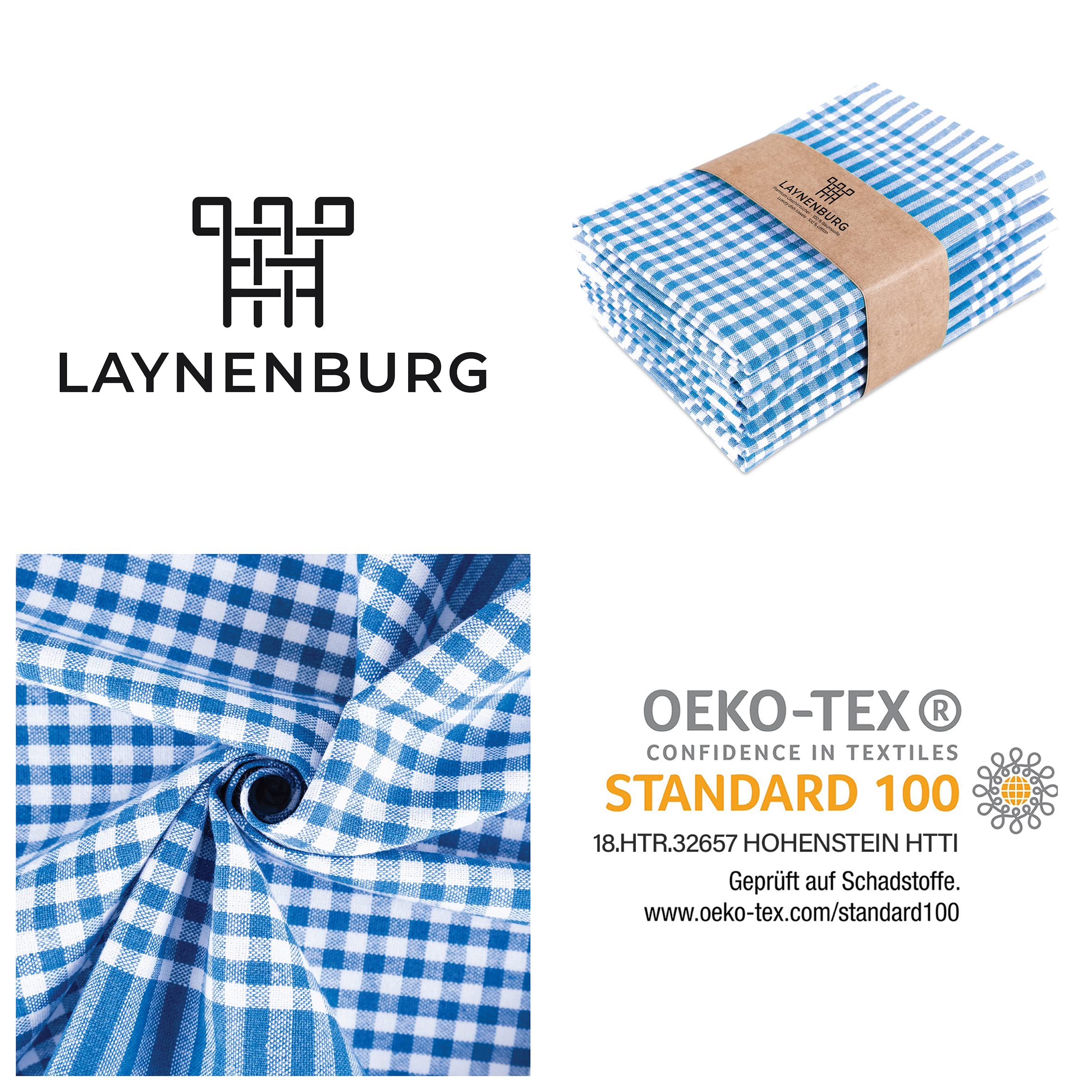 LAYNENBURG 10er-Set Premium Geschirrtücher kariert - 100% Baumwolle - 45x65 cm & Aufhänger - Oeko TEX Standard 100 - Küchentücher fusselfrei & modern - Vintage Küchenhandtücher (Blau)