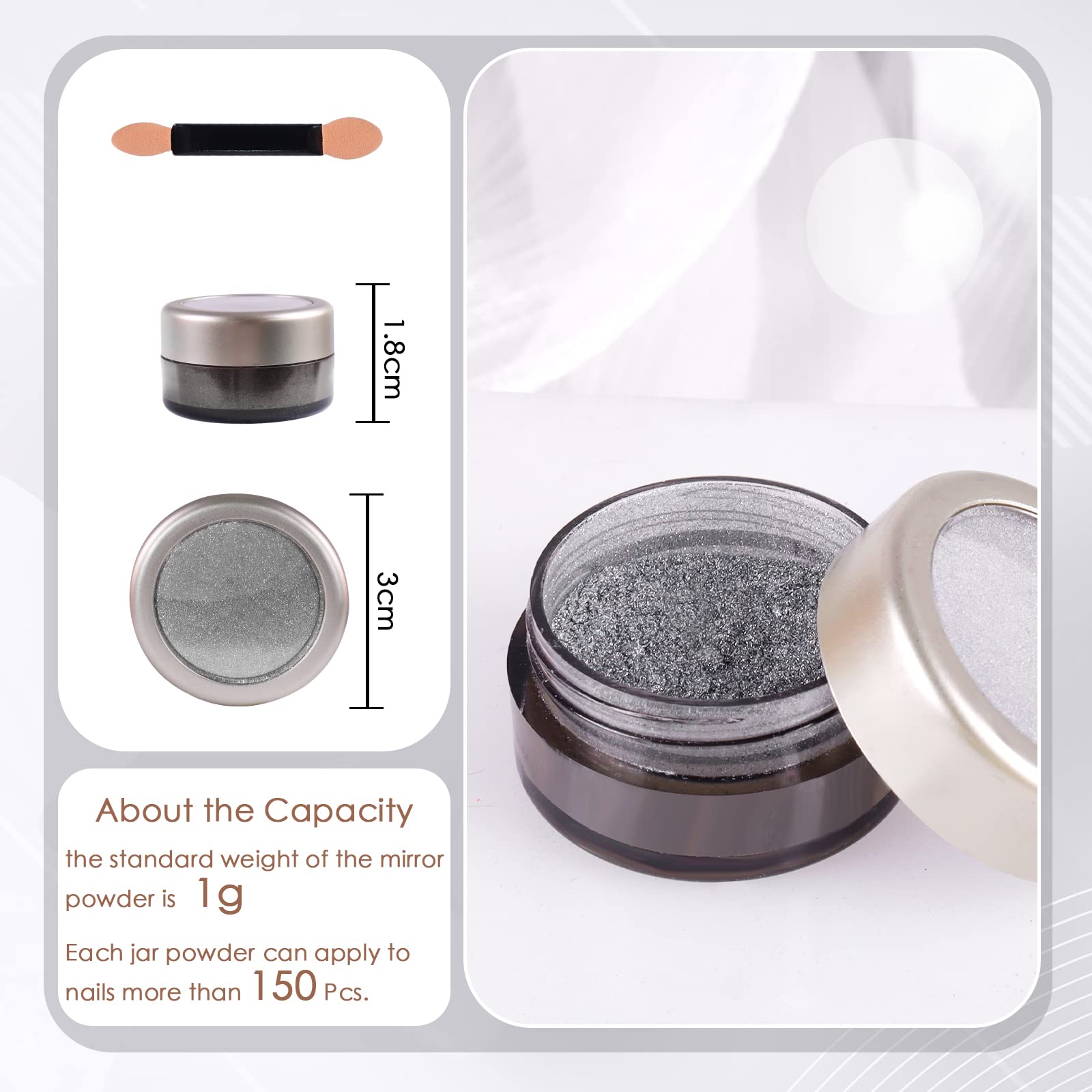 ProduktbeschreibungLaza bedeutet was ♥ Erhalten Sie schöne Qualitätsprodukte zu einem vernünftigen Preis. ♥ Ausgezeichneter Kundenservice mit einer hohen Zufriedenheitsbewertung. Ihr engagierter Kundenservice steht Ihnen rund um die Uhr mit Begeisterung und Geduld zur Seite. (Ausser gesetzlichen Feiertagen) ♥ 30-Tage Rückerstattung und erneute Versand Garantie. Rücksenden Sie Ihr Paket in der Regel 7-15 Tage. ♥ Zuverlässige Amazon Logistics als Spediteur. Wenn Sie das Paket nicht erhalten können oder der Artikel defekt war, wenn es kommt, kontaktieren Sie bitte zuerst den Amazon Kundendienst auf Amazon.com und dann kontaktieren Sie uns.Anwendung von Chrompulver:1. Einfach auf natürliche oder künstliche Nägel aufzutragen, um Spiegel mit metallischem reflektierendem Effekt zu erzeugen.2. Sie können es auch verwenden, um Telefonhüllen, Harze, Becher und andere DIY-Artikel zu dekorieren. Das Chromnagelpulver ist auch eine Art ultrafeiner Glitzer, der als Pigment von hausgemachtem Aquarell oder Schleim serviert werden kann. Benutze es einfach, wie du willst.Feature:Gewicht: Jedes Glas enthält 1g Chromnagel Pulver