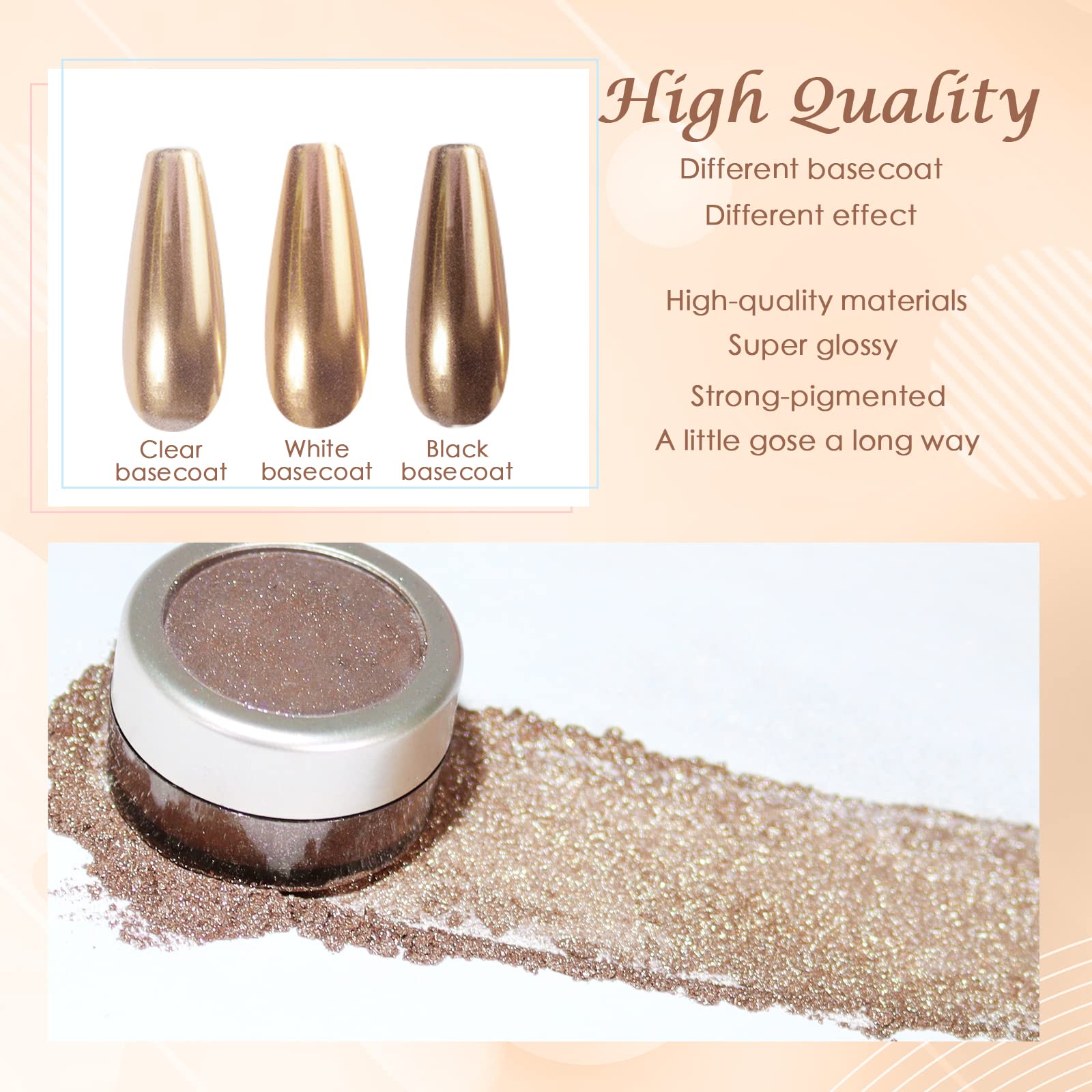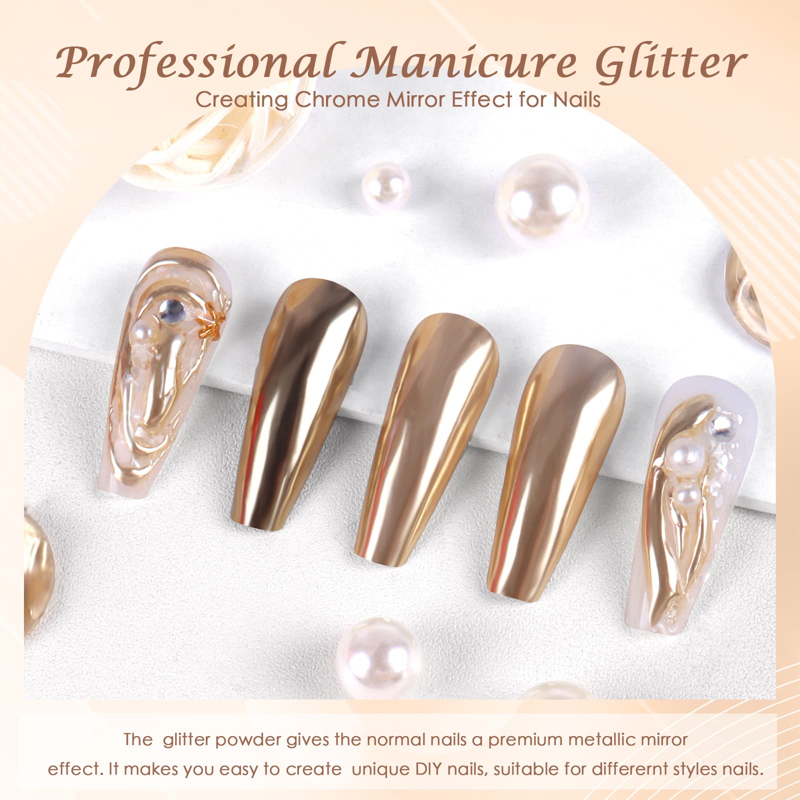 Laza Chrom Nagel Pulver Spiegel Effekt Metallischer Staub Holographischer Glitter Glasierte Maniküre Dekoration Reflektierendes Pigment für DIY Gel Polish Nail Art, Harz Handwerk mit Champagner Gold