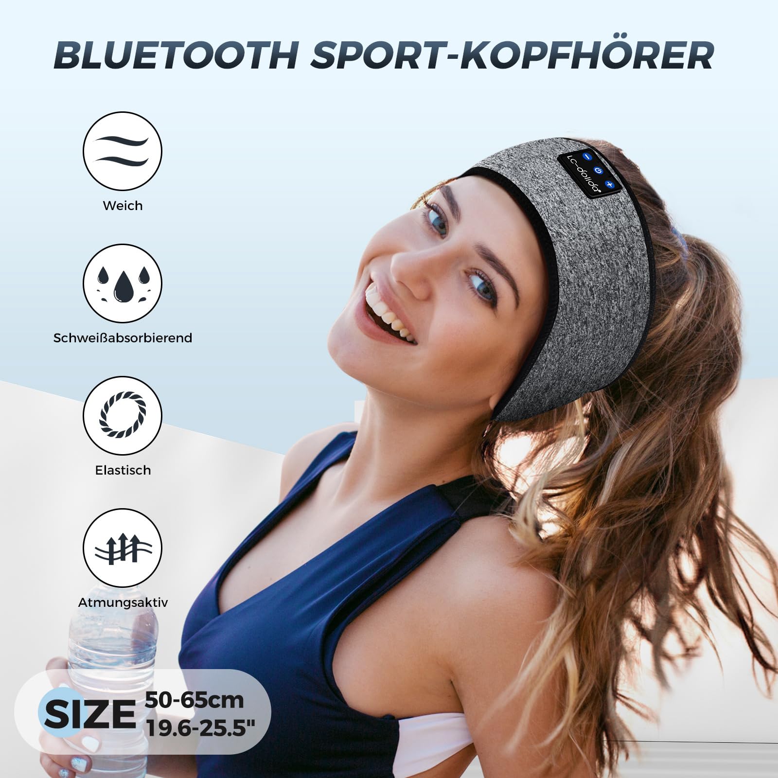 LC-dolida Schlafkopfhörer Bluetooth 5.4, Schlaf Stirnband Kopfhörer Headband Schlafmaske, Sportskopfhörer Musik schlafen Stirnband für Sport Training, Joggen, Yoga, Reisen