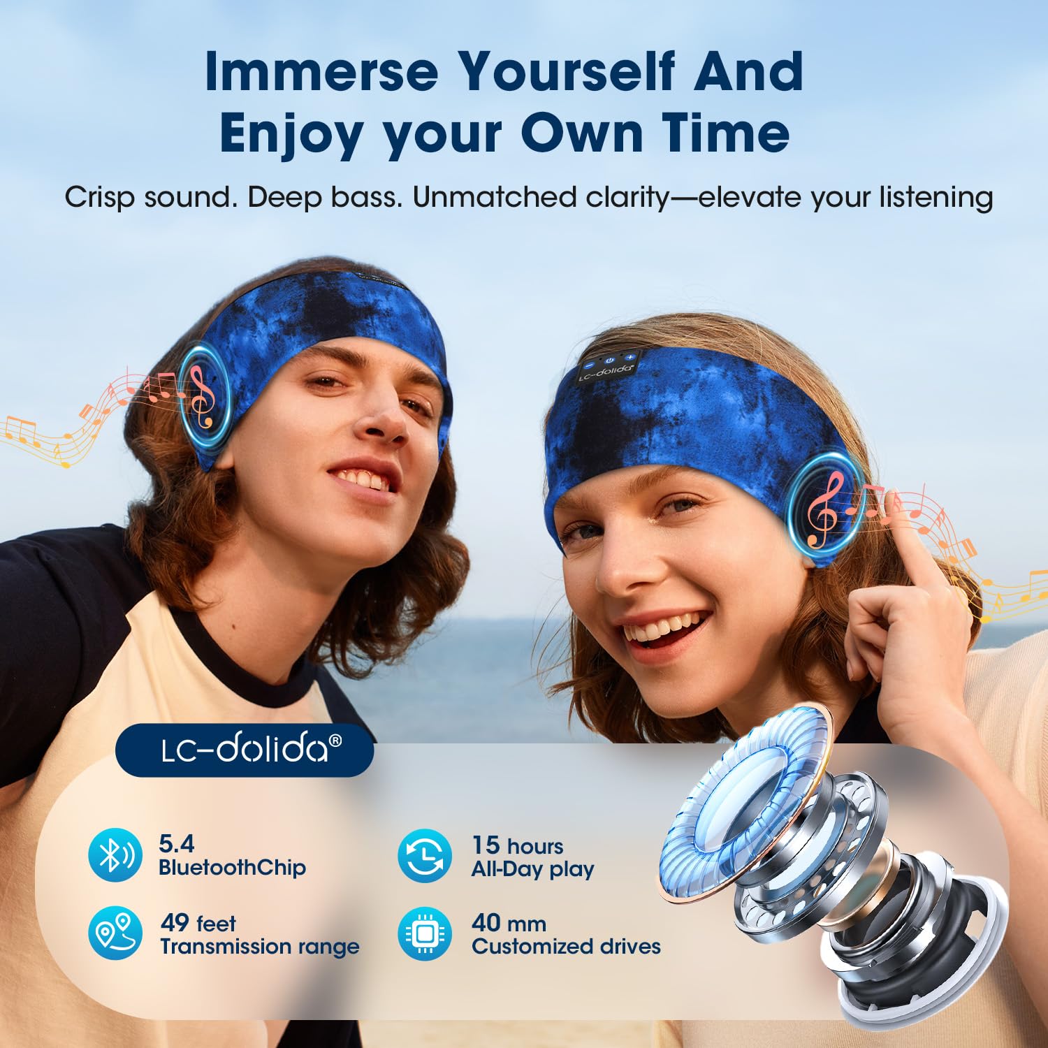 LC-dolida Schlafkopfhörer Bluetooth Sport-Kopfhörer Stirnband, Kabellos Schlafen Kopfhörer 15+ Stunden Lange Spielzeit Leichte Schlafstirnband mit HiFi-Stereo,Ergonomisch Tech Gadgets