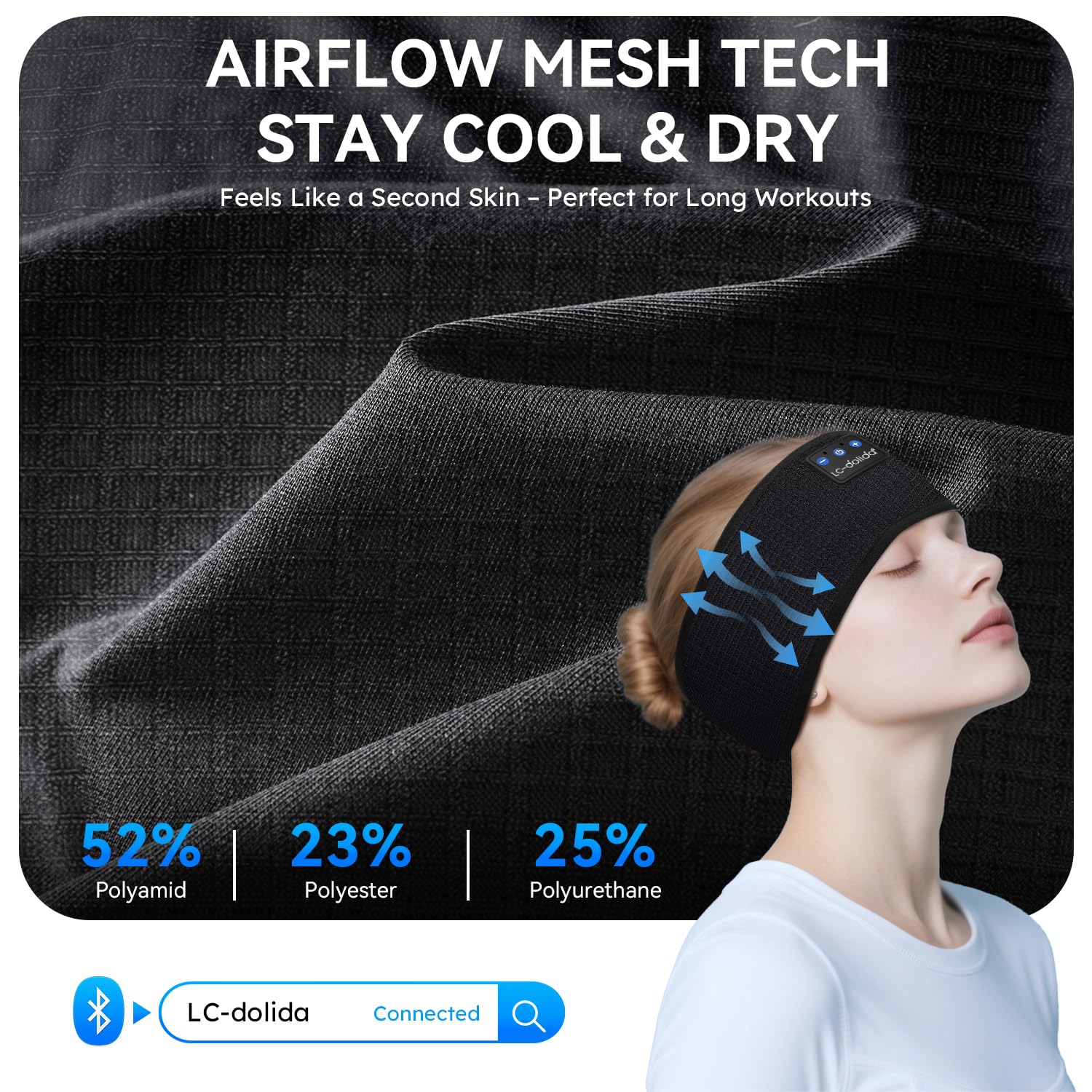 LC-dolida Schlafkopfhörer Bluetooth Stirnband Sport-Kopfhörer, Kabellos Kopfhörer zum Schlafen 15+ Stunden Lange Spielzeit Schlafkopfhörer Seitenschläfer mit HiFi-Stereo,Ergonomisch Tech Gadgets