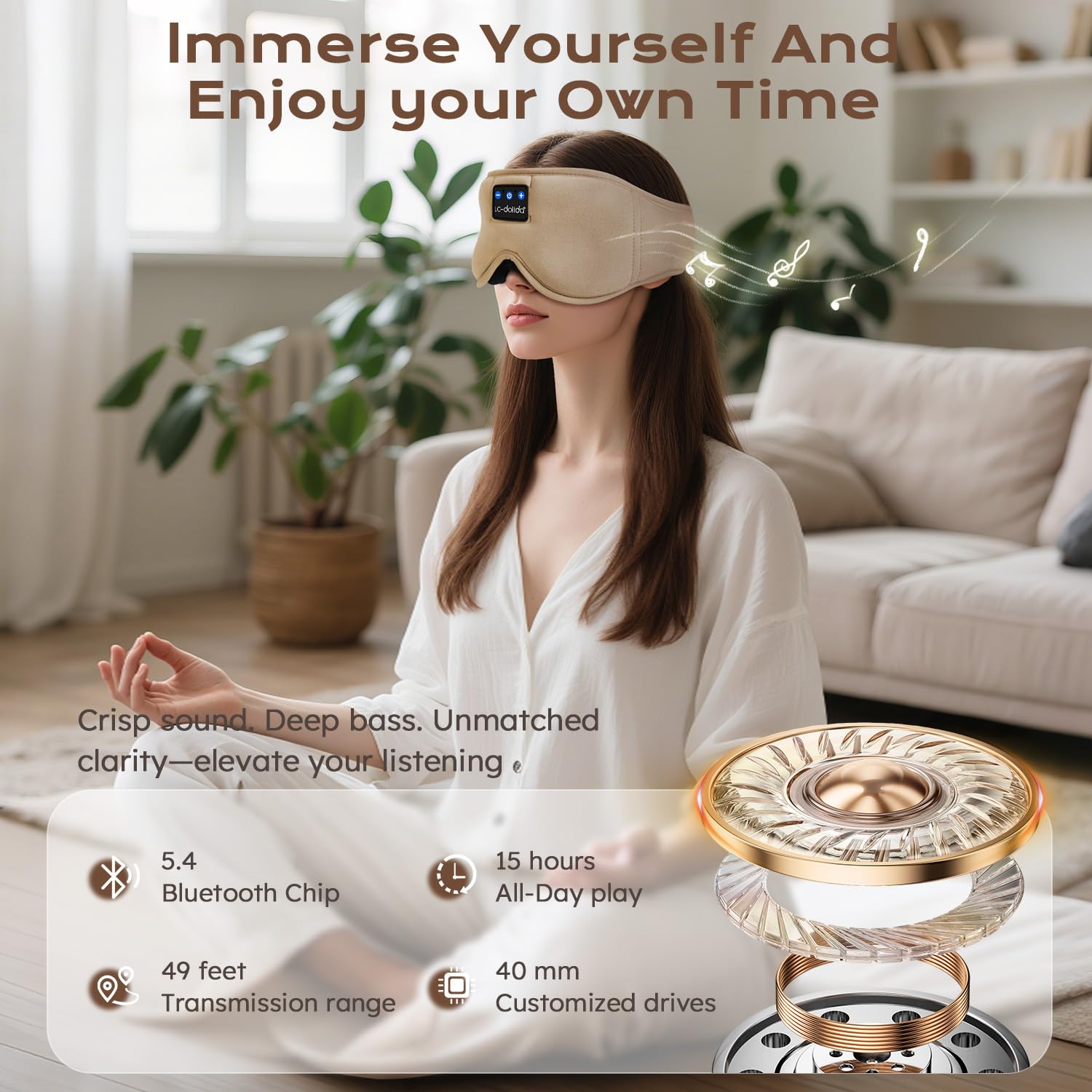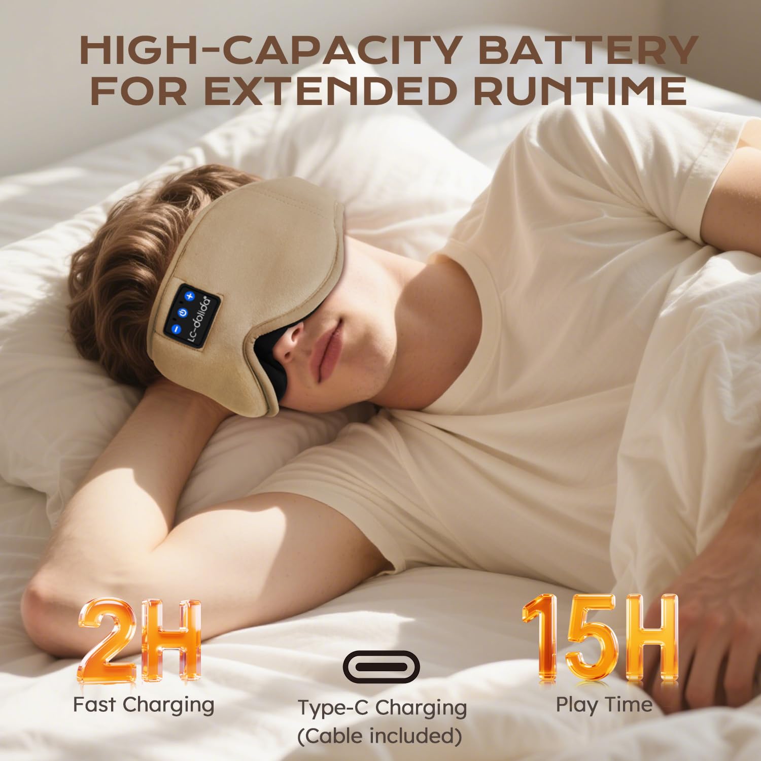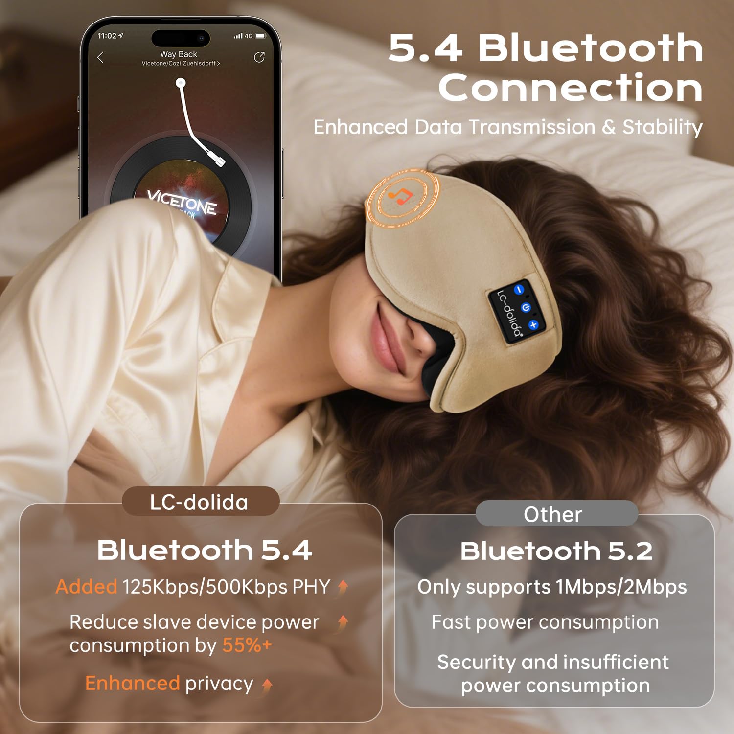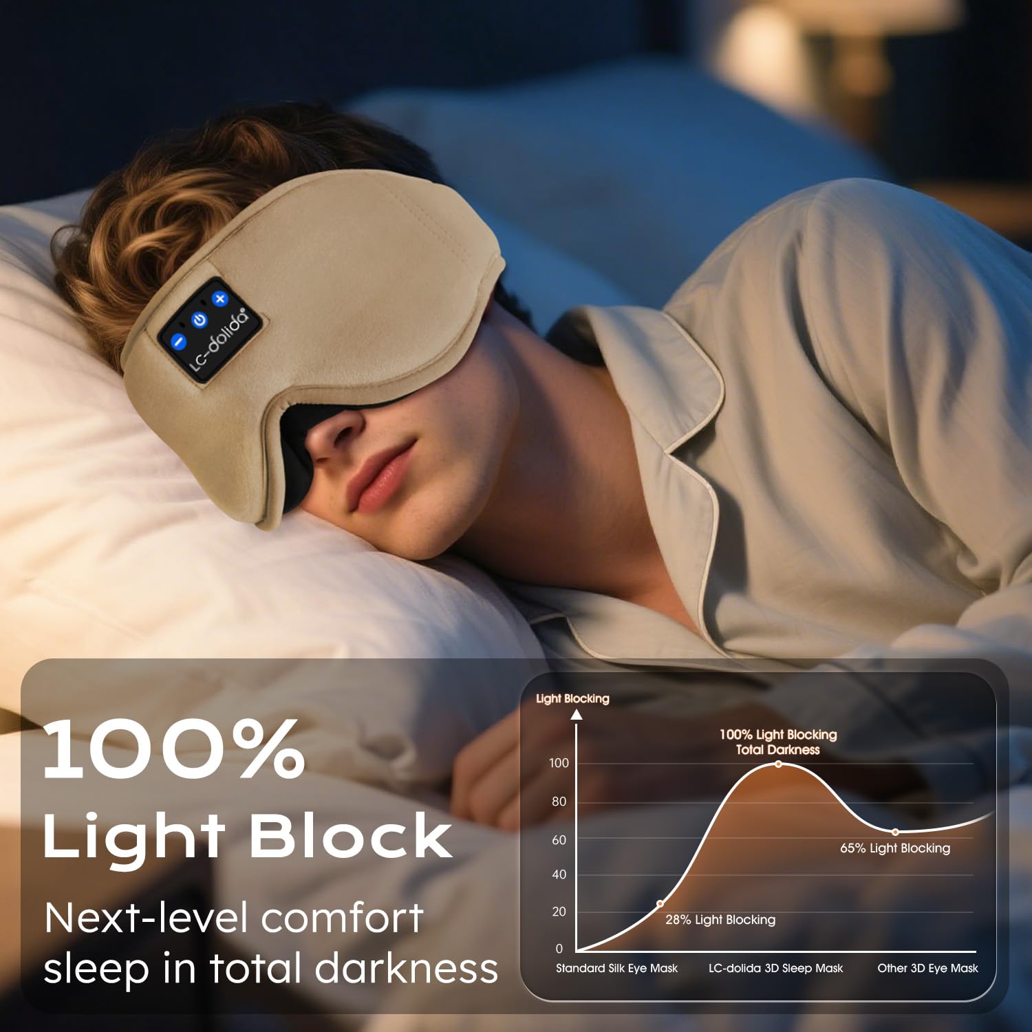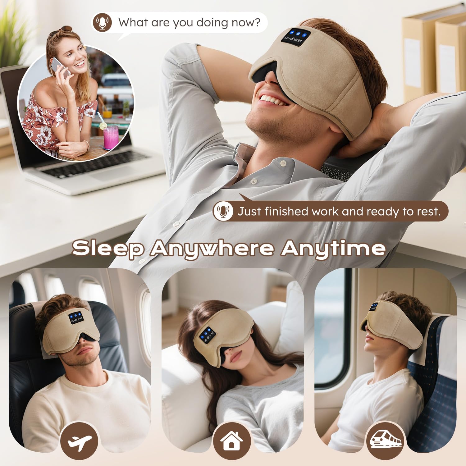 LC-dolida Schlafmaske mit Kopfhörer Bluetooth V5.4, Schlafkopfhörer Atmungsaktive für Frauen Herren,Augenmaske Baumwolle Waschbar Schlafbrille mit Mikrofon für Reisen/Nickerchen/Yoga/Meditation