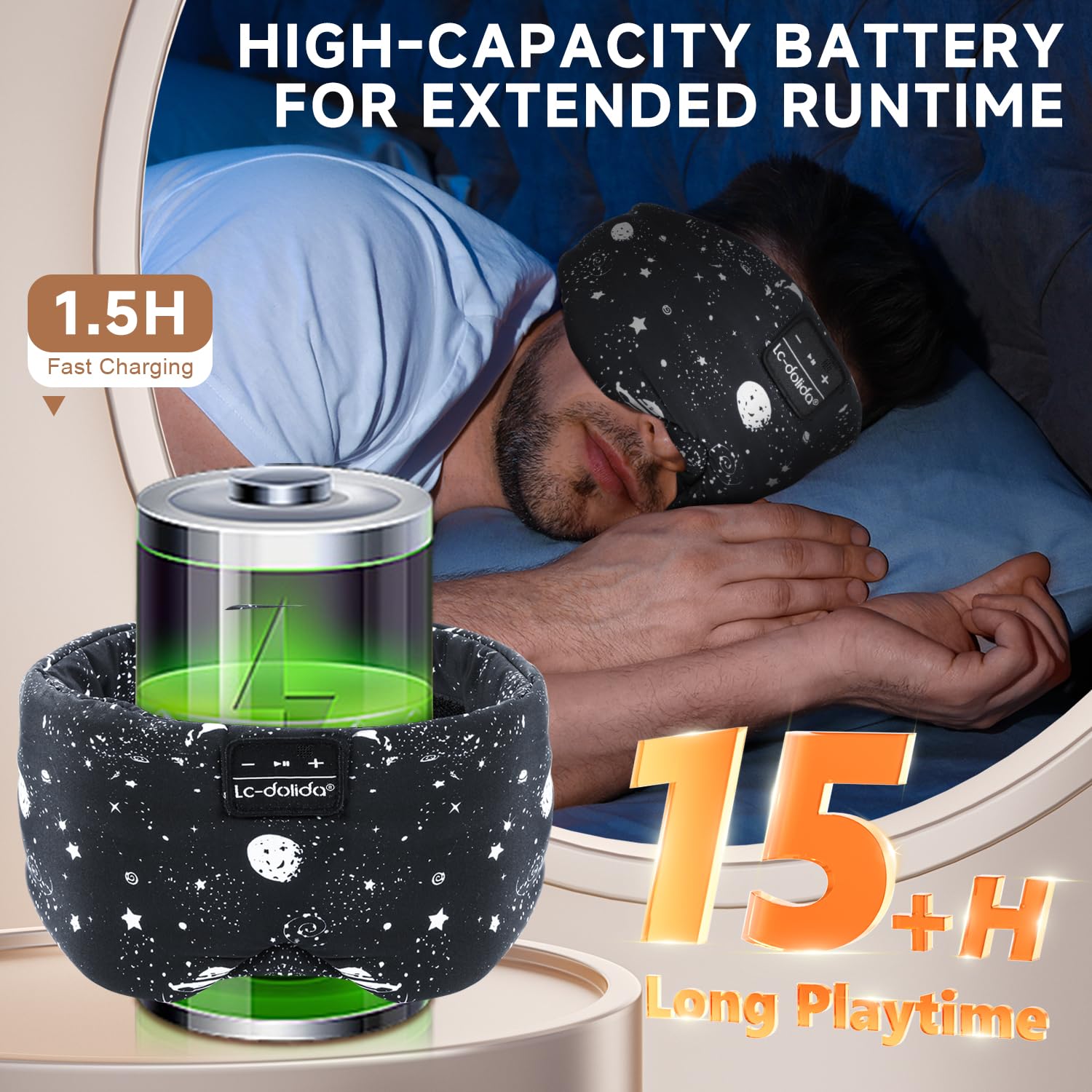 LC-dolida Schlafmaske mit Kopfhörer Schlafkopfhörer Seitenschläfer für Frauen Herren,Augenmaske Baumwolle Waschbar Schlafbrille mit Mikrofon für Reisen/Nickerchen/Yoga/Meditation/Schlafen
