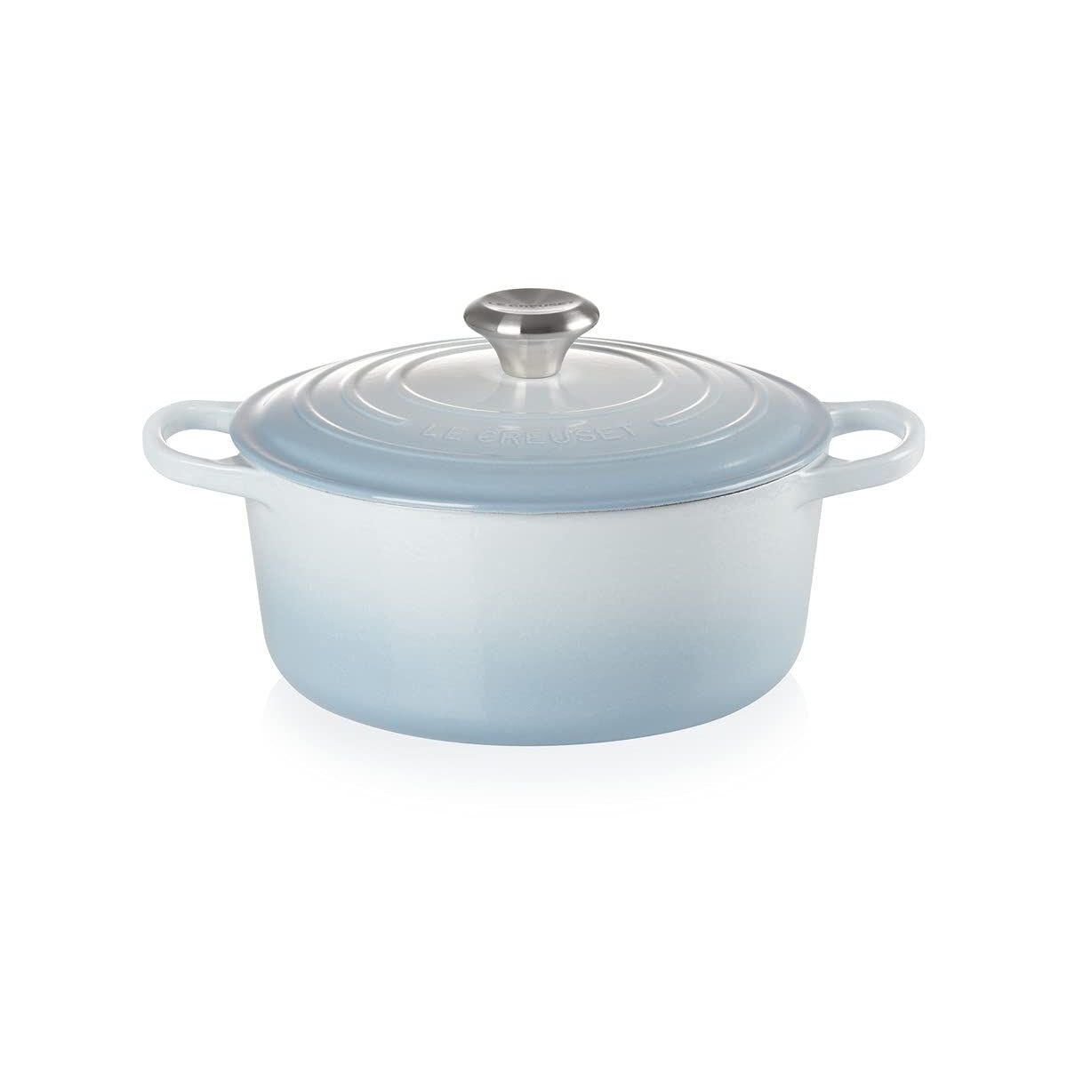 Le Creuset Signature Gusseisen-Bräter mit Deckel, Ø 24 cm, Rund, Für alle Herdarten und Induktion geeignet, Volumen: 4,2 l, 4,305 kg, Coastal Blue, 21177244202430