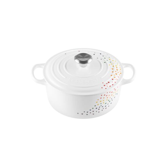 Runder Gusseisen-Bräter zum Schmoren und Braten von Fleisch sowie Gemüse, Ideal zur Zubereitung von Eintöpfen und Suppen oder zum Brot backen, Ideal zum Warmhalten und Servieren durch gleichmässige Wärmeverteilung sowie -speicherung vom Boden bis in die Seitenwände, Energieeffizientes Garen, Schmoren und Kochen dank Fertigung aus Gusseisen, Ideal geeignet für alle Herdarten inkl. Induktion sowie den Backofen, Grosse Griffe für sicheren und komfortablen Halt beim Anheben und Tragen des Topfes auch mit Ofenhandschuhen, Kratzfeste, helle Innenemaillierung, Made in France, Einfaches Reinigen von Hand oder in der Spülmaschine, Emaillierter Deckel aus Gusseisen mit hitzebeständigem Edelstahlknauf, Lieferumfang: 1x Le Creuset Signature Runder Bräter aus Gusseisen mit Deckel, Füllmenge: 4.2 Liter, Material: Emailliertes Gusseisen, Masse: 32.5 x 25.2 x 16.6 cm, Gewicht: 4.305 kg, Farbe: Loving Collection, 21177248471430