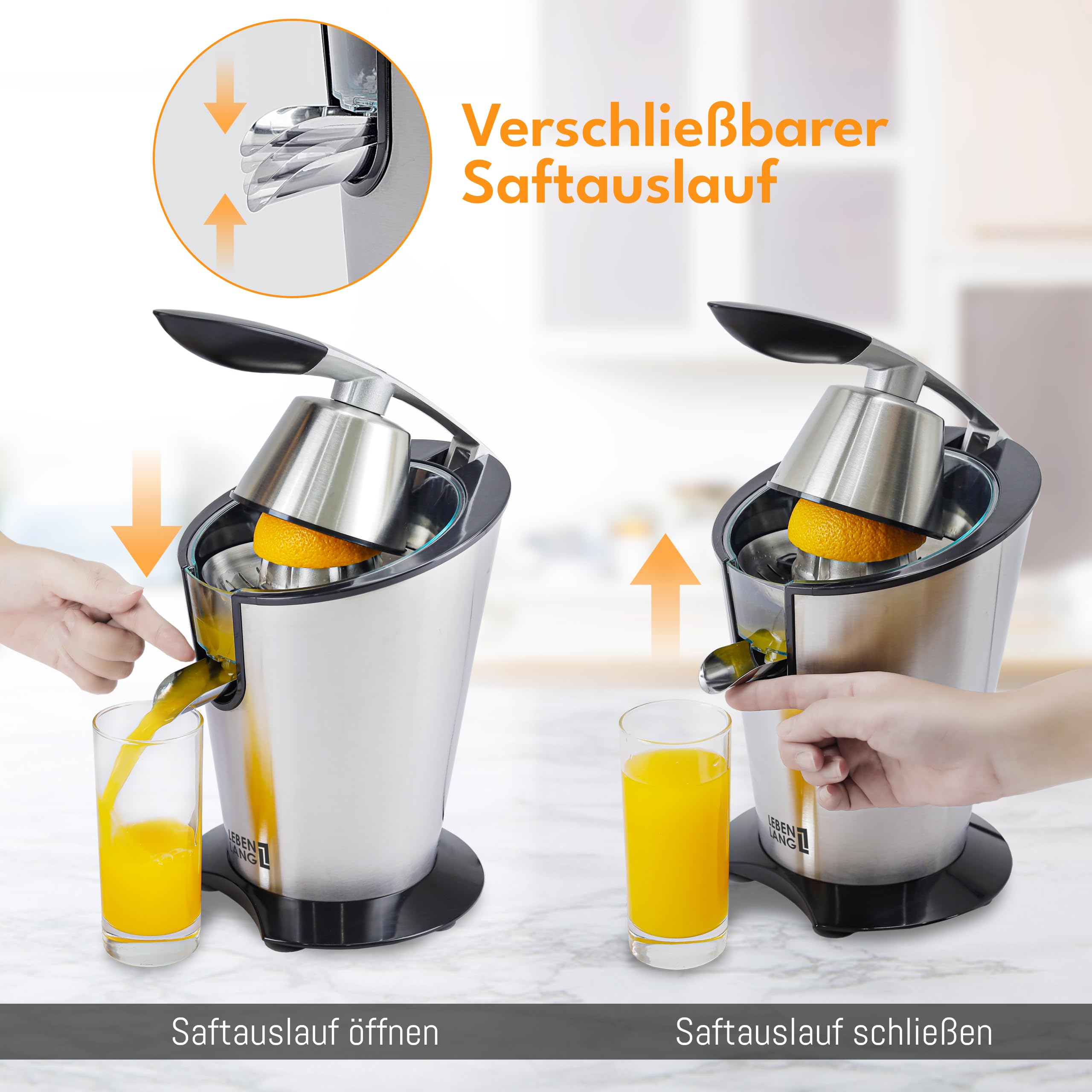 LEBENLANG Saftpresse elektrisch 600W - Inkl. Edelstahlkegel & BPA-Frei I Hohe Ergiebigkeit I Orangenpresse Zitruspresse Zitronenpresse Orangensaftpresse I Orange Juicer Press Zitronen