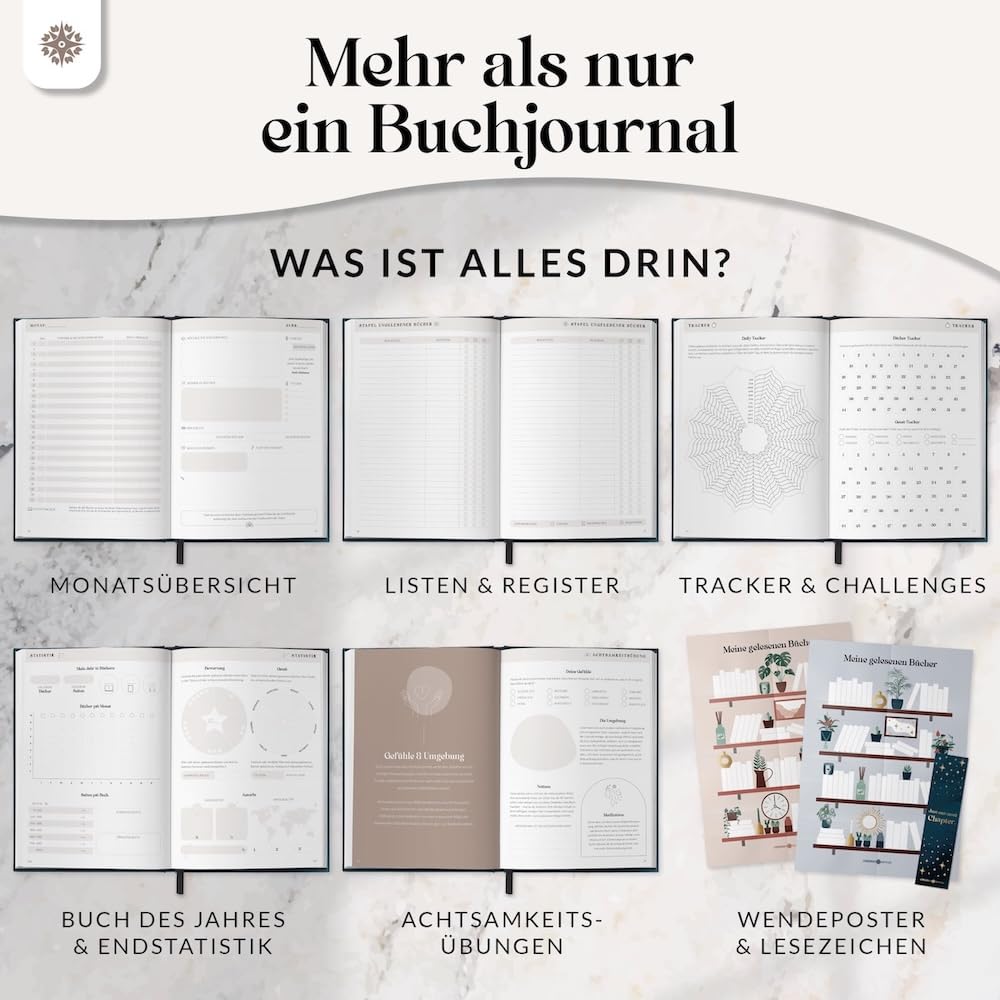 Lebenskompass Buchclub - Das Lesetagebuch & Book Journal "SAPHIR" - Hardcover DIN A5 Tagebuch für Erwachsene - Book Club Reading Bullet Journal Tracker - Booktok