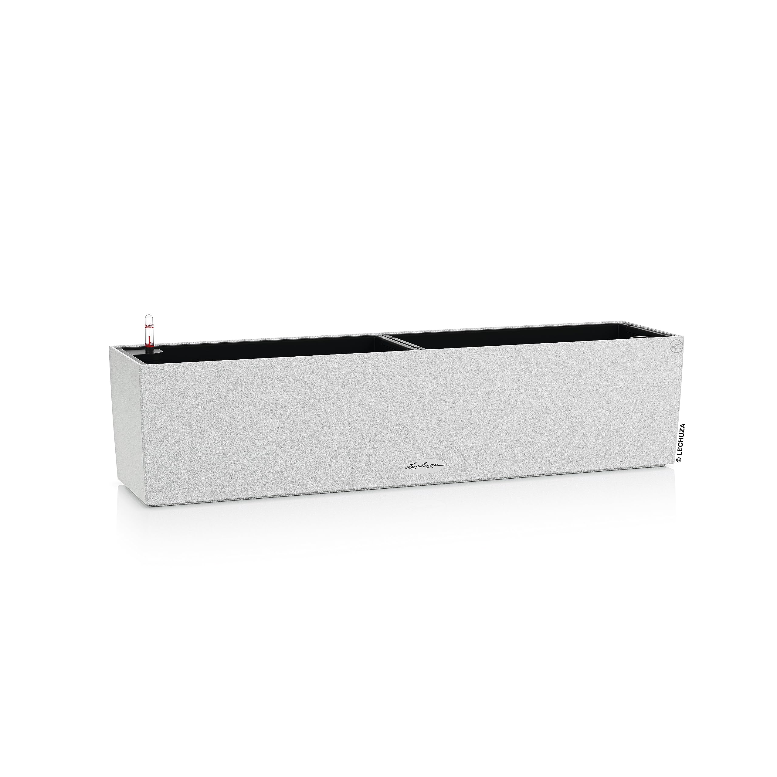 Schöne Aussichten: Der Balkonkasten BALCONERA Stone bringt natürlichen Flair auf den Balkon. Das Pflanzgefäss mit der Oberfläche in Naturstein-Optik versorgt die Pflanzen ganzjährig mit der richtigen Menge an Wasser. Dafür sorgt das im Pflanzgefäss integrierte Bewässerungssystem mit Wasserstandsanzeiger und Wasserreservoir. Der Pflanzeinsatz ist mit versenkbaren Griffen ausgestattet, womit der Einsatz ganz handlich auf dem Tisch oder dem Boden bepflanzt werden können, während die Balkonkästen am Geländer verbleiben. Durch die integrierte Bodenschraube fällt die Sorge über zu nasse Regentage weg: Dank des Überlaufs kann das Regenwasser im Aussenbereich ganz einfach abfliessen. Für die Verwendung im Innenbereich kann die Schraube ganz einfach festgezogen werden. Der Balkonkasten lässt sich mit seiner natürlichen Oberflächenstruktur ideal mit Grünpflanzen und verschiedenen Kräutern kombinieren. Der Balkonkasten BALCONERA Stone ist in vielen verschiedenen Farben und Grössen erhältlich. Wählen Sie zwischen den Farben Steingrau, Sandbeige, Graphitschwarz oder Quarzweiss sowie den Grössen 50 und 80. Alle LECHUZA-Pflanzgefässe werden in Deutschland unter höchsten Produktionsstandards hergestellt. Die langlebigen Kunststoffgefässe sind bruchsicher, witterungsbeständig und vollständig recycelbar. Alle schwarzen Pflanzeinsätze sind aus 100% recyceltem Kunststoff hergestellt. Lieferumfang: 1x LECHUZA BALCONERA Color, inkl. Bewässerungssystem, Pflanzsubstrat LECHUZA-PON als Drainageschicht und Pflanzeinsatz mit versenkbaren Griffen Die passenden Balkonkastenhalter sind separat erhältlich.
