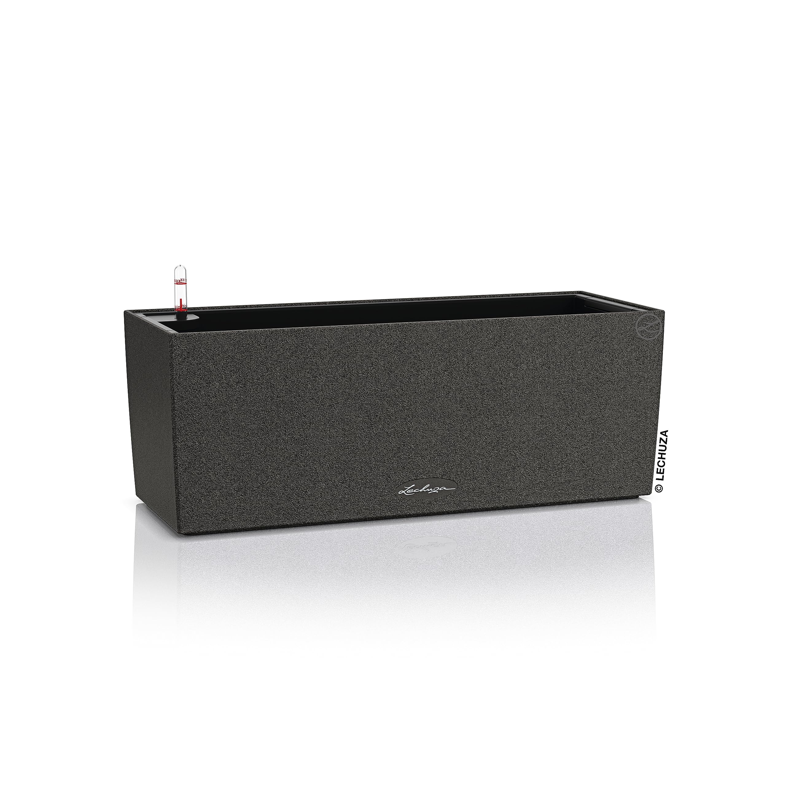 Schöne Aussichten: Der Balkonkasten BALCONERA Stone bringt natürlichen Flair auf den Balkon. Das Pflanzgefäss mit der Oberfläche in Naturstein-Optik versorgt die Pflanzen ganzjährig mit der richtigen Menge an Wasser. Dafür sorgt das im Pflanzgefäss integrierte Bewässerungssystem mit Wasserstandsanzeiger und Wasserreservoir. Der Pflanzeinsatz ist mit versenkbaren Griffen ausgestattet, womit der Einsatz ganz handlich auf dem Tisch oder dem Boden bepflanzt werden können, während die Balkonkästen am Geländer verbleiben. Durch die integrierte Bodenschraube fällt die Sorge über zu nasse Regentage weg: Dank des Überlaufs kann das Regenwasser im Aussenbereich ganz einfach abfliessen. Für die Verwendung im Innenbereich kann die Schraube ganz einfach festgezogen werden. Der Balkonkasten lässt sich mit seiner natürlichen Oberflächenstruktur ideal mit Grünpflanzen und verschiedenen Kräutern kombinieren. Der Balkonkasten BALCONERA Stone ist in vielen verschiedenen Farben und Grössen erhältlich. Wählen Sie zwischen den Farben Steingrau, Sandbeige, Graphitschwarz oder Quarzweiss sowie den Grössen 50 und 80. Alle LECHUZA-Pflanzgefässe werden in Deutschland unter höchsten Produktionsstandards hergestellt. Die langlebigen Kunststoffgefässe sind bruchsicher, witterungsbeständig und vollständig recycelbar. Alle schwarzen Pflanzeinsätze sind aus 100% recyceltem Kunststoff hergestellt. Lieferumfang: 1x LECHUZA BALCONERA Color, inkl. Bewässerungssystem, Pflanzsubstrat LECHUZA-PON als Drainageschicht und Pflanzeinsatz mit versenkbaren Griffen Die passenden Balkonkastenhalter sind separat erhältlich.