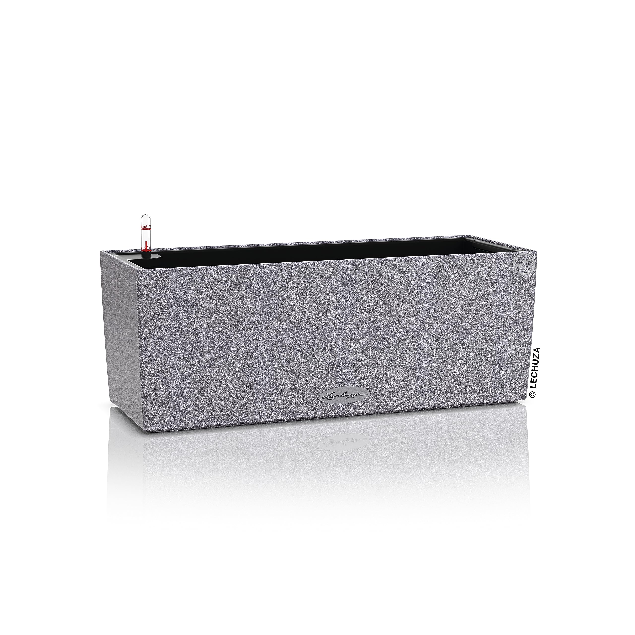 Schöne Aussichten: Der Balkonkasten BALCONERA Stone bringt natürlichen Flair auf den Balkon. Das Pflanzgefäss mit der Oberfläche in Naturstein-Optik versorgt die Pflanzen ganzjährig mit der richtigen Menge an Wasser. Dafür sorgt das im Pflanzgefäss integrierte Bewässerungssystem mit Wasserstandsanzeiger und Wasserreservoir. Der Pflanzeinsatz ist mit versenkbaren Griffen ausgestattet, womit der Einsatz ganz handlich auf dem Tisch oder dem Boden bepflanzt werden können, während die Balkonkästen am Geländer verbleiben. Durch die integrierte Bodenschraube fällt die Sorge über zu nasse Regentage weg: Dank des Überlaufs kann das Regenwasser im Aussenbereich ganz einfach abfliessen. Für die Verwendung im Innenbereich kann die Schraube ganz einfach festgezogen werden. Der Balkonkasten lässt sich mit seiner natürlichen Oberflächenstruktur ideal mit Grünpflanzen und verschiedenen Kräutern kombinieren. Der Balkonkasten BALCONERA Stone ist in vielen verschiedenen Farben und Grössen erhältlich. Wählen Sie zwischen den Farben Steingrau, Sandbeige, Graphitschwarz oder Quarzweiss sowie den Grössen 50 und 80. Alle LECHUZA-Pflanzgefässe werden in Deutschland unter höchsten Produktionsstandards hergestellt. Die langlebigen Kunststoffgefässe sind bruchsicher, witterungsbeständig und vollständig recycelbar. Alle schwarzen Pflanzeinsätze sind aus 100% recyceltem Kunststoff hergestellt. Lieferumfang: 1x LECHUZA BALCONERA Color, inkl. Bewässerungssystem, Pflanzsubstrat LECHUZA-PON als Drainageschicht und Pflanzeinsatz mit versenkbaren Griffen Die passenden Balkonkastenhalter sind separat erhältlich.