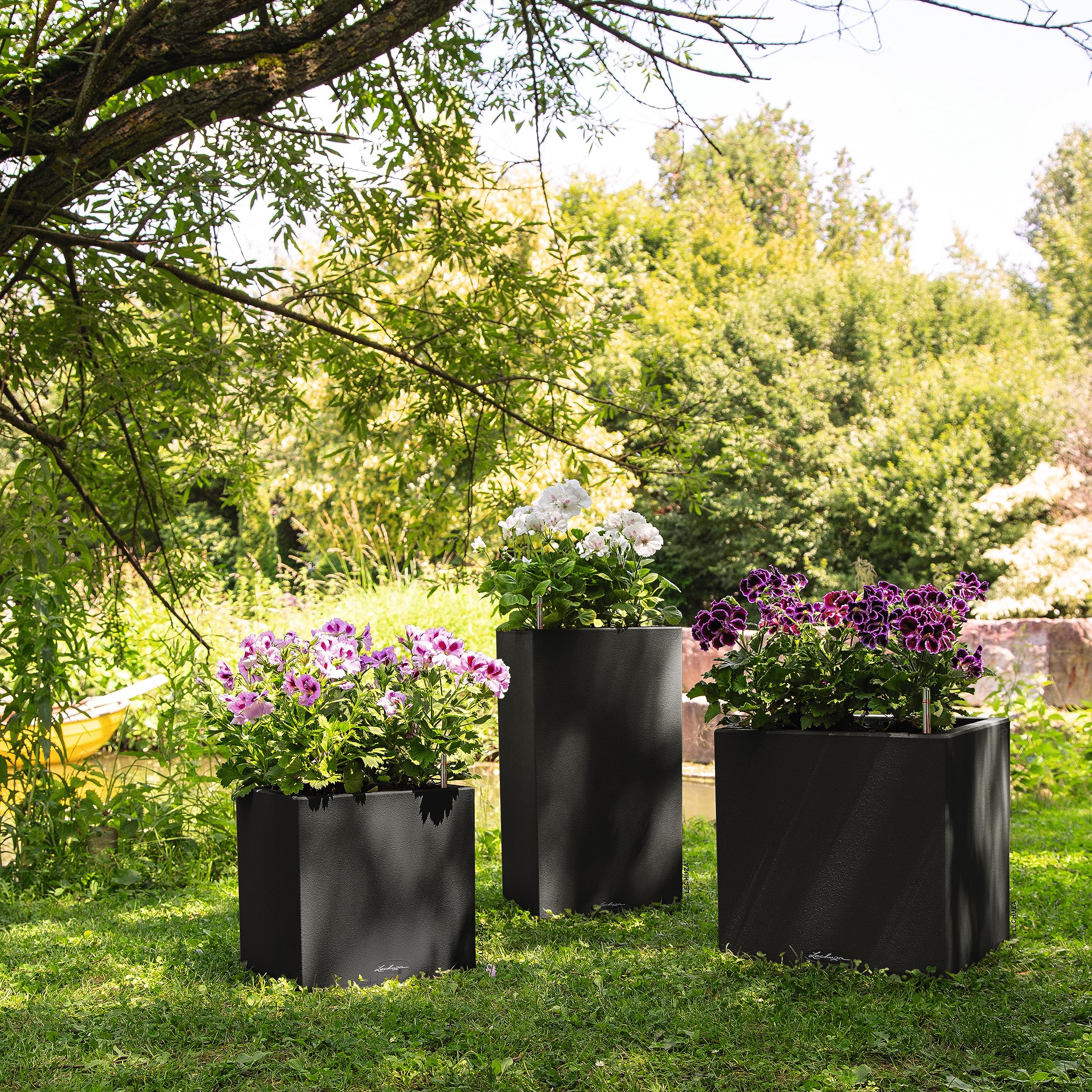 Wer klare Linien schätzt, wird CANTO Stone lieben. Die raue Natursteinoptik in drei Farbtönen bildet einen wunderbaren Kontrast zu sattem Grün und bunten Blüten. Dank gleicher Abmessungen kann der CANTO Pflanzeinsatz zwischen den beiden Modellen Würfel und Säule problemlos getauscht werden. CANTO Stone ist Gewinner des Red Dot Awards 2017, spiegelt Kernelemente zeitgemässer Architektur wider und setzt Pflanzen attraktiv in Szene. Zarte Frühblüher, üppige Sommerblüten, herbstliche Arrangements oder winterliche Bepflanzungen – die Gefässe in Naturstein-Optik bieten zu jeder Jahreszeit einen stimmungsvollen Kontrast zu den Pflanzen. Die Gefässe, die sich wie rauer, massiver Stein anfühlen, sind aus hochwertigem, wetterfestem Kunststoff und daher leicht zu transportieren. Und das LECHUZA-Bewässerungssystem übernimmt wie gewohnt die optimale Wasserversorgung der Pflanzen. Einfacher kann Pflanzenpflege nicht sein! CANTO Stone Pflanzeinsatz Wechselbarer Pflanzeinsatz – geschlossen, mit Rahmen in Gefässfarbe und Griffmulden Leichtes Transportieren, selbst von hohen Bepflanzungen Schnelles Ein- und Auswechseln der Bepflanzung Einfaches Überwintern Ihrer Bepflanzung Für die Innen- und Aussenbepflanzung, mit Bodenschraube