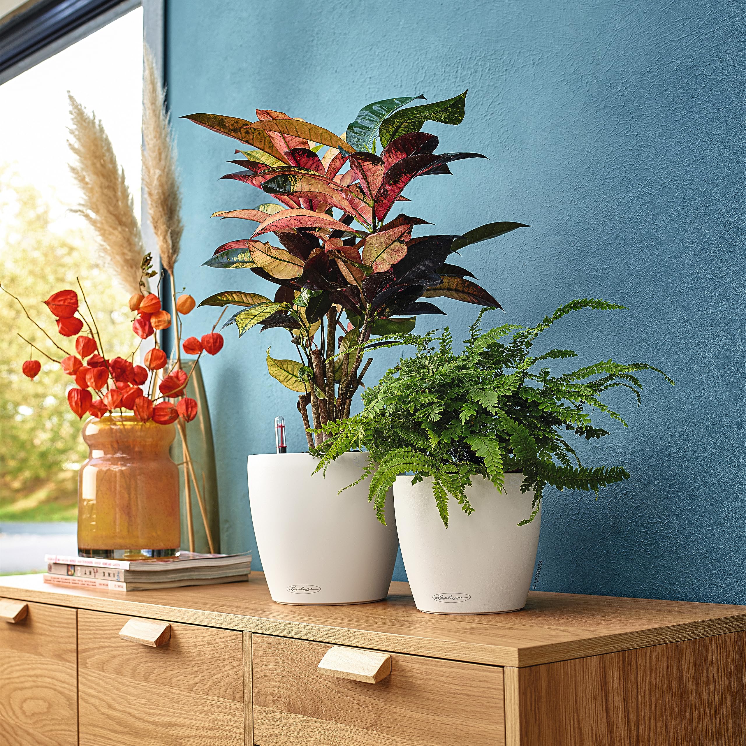 Mit seiner zeitlosen Form darf der beliebte CLASSICO Color in keinem Zuhause fehlen. Seine dezenten matten Farben und das moderne Design fügen sich wunderbar in jedes Ambiente ein und machen ihn zu einem Must-Have – ob im Wohnzimmer oder auf dem Balkon und der Terrasse. Der stilvolle Klassiker begeistert in allen sieben Grössen - von 18 cm Durchmesser bis hin zu 70 cm Durchmesser. Zum Beispiel passt er in der kleinsten Grösse 18 perfekt auf Regale, Fensterbänke, Beistelltische und kleinere Flächen im Innen- und Aussenbereich und gibt in der Grösse 70 besonders üppigen Pflanzen ausreichend Platz zum Wurzeln und Wachsen. Die Gefässfamilie CLASSICO Color überzeugt mit ästhetischer Optik, hochwertiger Verarbeitung und smarter Funktionalität. Dank des zuverlässigen LECHUZA-Bewässerungssystems versorgen sich die Pflanzen nach dem Vorbild der Natur und im Aussenbereich schützt die herausdrehbare Bodenschraube bei starkem Regen vor Staunässe. Das schlichte Design und die seidenmatte Oberfläche in den harmonischen Farben Weiss, Schiefergrau und Sandbeige setzen Zimmer- und Outdoorpflanzen trendig in Szene und machen das Pflanzgefäss zu einem unverzichtbaren Partner. Aufgrund der vielfältigen Grössen gibt es für alle Pflanzen den passenden CLASSICO Color – für einen einheitlichen, modernen Look. Erhältlich in 7 verschiedenen Grössen und den Farben Schiefergrau, Weiss, Muskat und Sandbraun. Alle LECHUZA-Pflanzgefässe werden in Deutschland unter höchsten Produktionsstandards hergestellt. Die langlebigen Kunststoffgefässe sind bruchsicher, witterungsbeständig und vollständig recycelbar. Alle schwarzen Bewässerungssysteme sind aus 100% recyceltem Kunststoff hergestellt. Lieferumfang: 1x CLASSICO Color inkl. Bewässerungssystem und Pflanzsubstrat LECHUZA-PON als Drainageschicht