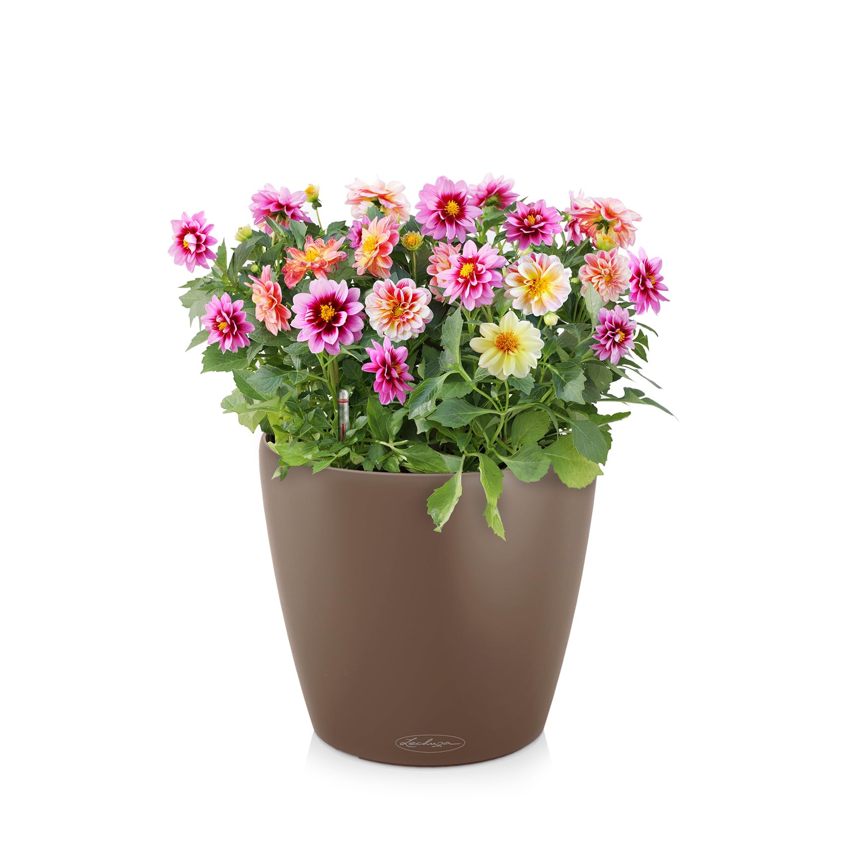 Mit seiner zeitlosen Form darf der beliebte CLASSICO Color in keinem Zuhause fehlen. Seine dezenten matten Farben und das moderne Design fügen sich wunderbar in jedes Ambiente ein und machen ihn zu einem Must-Have – ob im Wohnzimmer oder auf dem Balkon und der Terrasse. Der stilvolle Klassiker begeistert in allen sieben Grössen - von 18 cm Durchmesser bis hin zu 70 cm Durchmesser. Zum Beispiel passt er in der kleinsten Grösse 18 perfekt auf Regale, Fensterbänke, Beistelltische und kleinere Flächen im Innen- und Aussenbereich und gibt in der Grösse 70 besonders üppigen Pflanzen ausreichend Platz zum Wurzeln und Wachsen. Die Gefässfamilie CLASSICO Color überzeugt mit ästhetischer Optik, hochwertiger Verarbeitung und smarter Funktionalität. Dank des zuverlässigen LECHUZA-Bewässerungssystems versorgen sich die Pflanzen nach dem Vorbild der Natur und im Aussenbereich schützt die herausdrehbare Bodenschraube bei starkem Regen vor Staunässe. Das schlichte Design und die seidenmatte Oberfläche in den harmonischen Farben Weiss, Schiefergrau und Sandbeige setzen Zimmer- und Outdoorpflanzen trendig in Szene und machen das Pflanzgefäss zu einem unverzichtbaren Partner. Aufgrund der vielfältigen Grössen gibt es für alle Pflanzen den passenden CLASSICO Color – für einen einheitlichen, modernen Look. Erhältlich in 7 verschiedenen Grössen und den Farben Schiefergrau, Weiss, Muskat und Sandbraun. Alle LECHUZA-Pflanzgefässe werden in Deutschland unter höchsten Produktionsstandards hergestellt. Die langlebigen Kunststoffgefässe sind bruchsicher, witterungsbeständig und vollständig recycelbar. Alle schwarzen Bewässerungssysteme sind aus 100% recyceltem Kunststoff hergestellt. Lieferumfang: 1x CLASSICO Color inkl. Bewässerungssystem und Pflanzsubstrat LECHUZA-PON als Drainageschicht