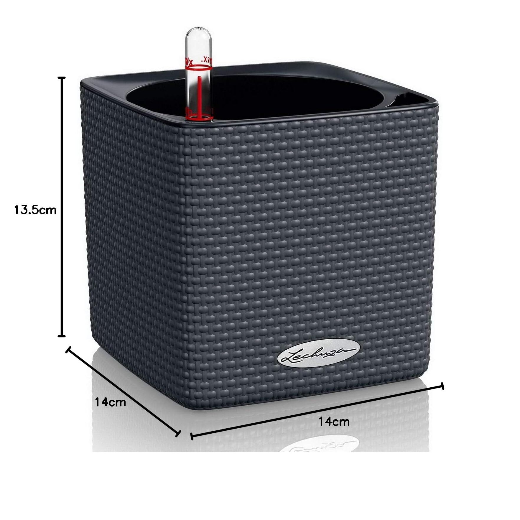 Lechuza Cube Color 14 13384 Kräutertopf, Hochwertiger Kunststoff, Inkl. Stick-Bewässerungssystem, für Innenraumbegrünung geeignet, schiefergrau, 14x14x14 cm (Packung mit 2)