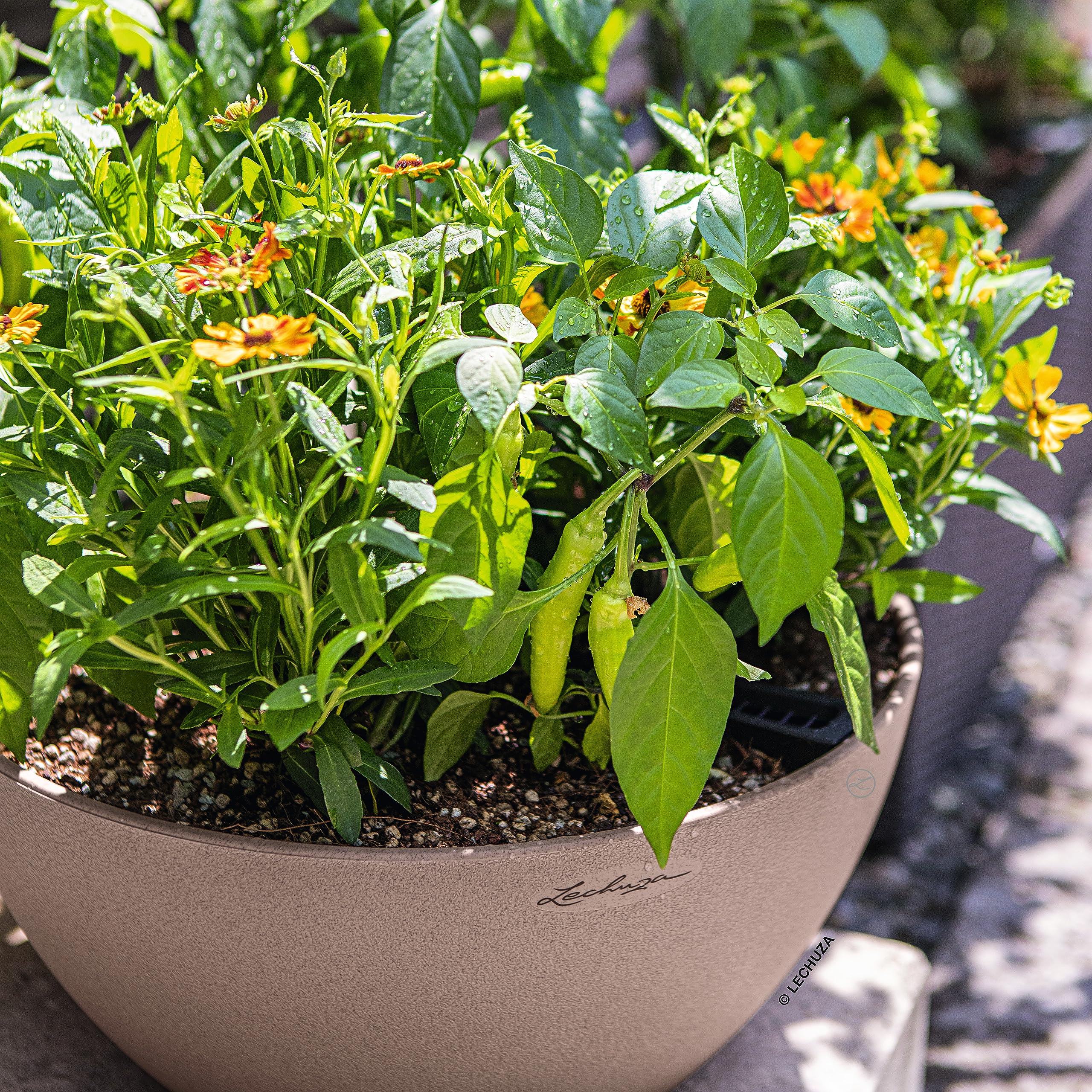 Die wetterbeständige Pflanzschale für das ganze Jahr: CUBETO Stone bietet viel Platz für herrliche Pflanzearragements - egal ob für innen oder aussen. Mit der unaufdringlichen Naturstein-Optik bietet er vielerlei Gestaltungsmöglichkeiten und passt sich jedem Ambiente an. Leicht, handlich und mit herausnehmbarem Pflanzeinsatz ausgestattet, ist das Pflanzgefäss ideal für kreative Bepflanzungen auf der Terrasse, dem Garten oder Balkon. Im Gefäss ist das Original LECHUZA-Bewässerungssystem integriert, welches die Pflanzen in der Schale zu jeder Jahreszeit bestens versorgt. An regnerischen Tagen kann überschüssiges Regenwasser dank Bodenschraube abfliessen. Damit ist CUBETO Stone ein pflegeleichter und vielseitiger Allrounder, bestens geeignet auch für die Grabbepflanzung. CUBETO Stone ist in zwei Grössen und den Farben Steingrau, Sandbeige, Graphitschwarz und Quarzweiss erhältlich. Alle LECHUZA-Pflanzgefässe werden in Deutschland unter höchsten Produktionsstandards hergestellt. Die langlebigen Kunststoffgefässe sind bruchsicher, witterungsbeständig und vollständig recycelbar. Alle schwarzen Pflanzeinsätze sind aus 100% recyceltem Kunststoff hergestellt. Lieferumfang: 1x LECHUZA CUBETO Stone, inkl. Bewässerungssystem, Pflanzsubstrat LECHUZA-PON als Drainageschicht und wechselbarem Pflanzeinsatz