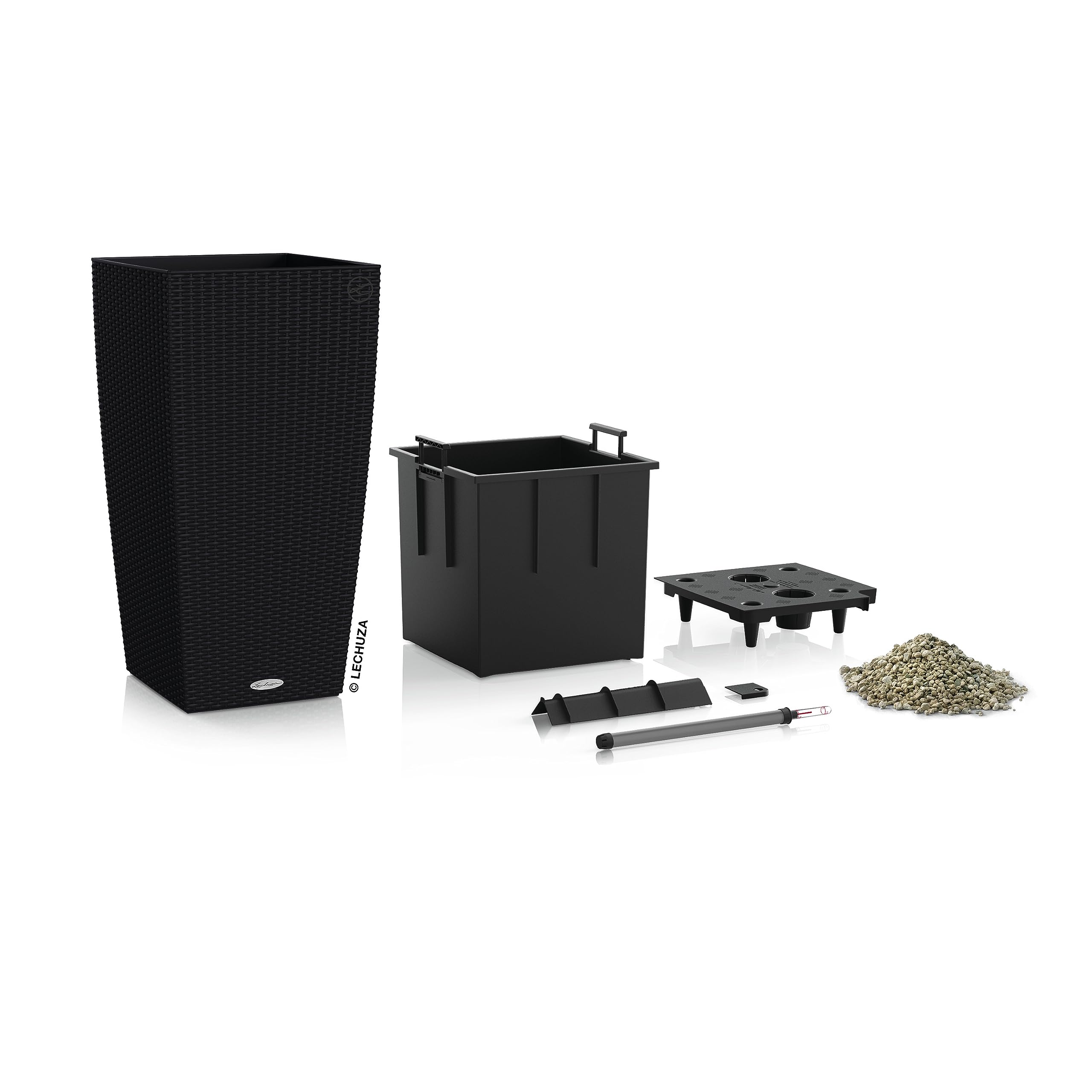 Romantisch rustikal setzt die Pflanzsäule CUBICO Cottage Grünpflanzen, Sträucher und Blumen im Garten gekonnt in Szene. Die umlaufende Flechtstruktur des Pflanzgefässes ist in vielen verschiedenen Farben erhältlich und bringt den Landhaus-Flair in jeden Outdoorbereich. Pflanzen können mit dem wechselbaren Pflanzeinsatz mit versenkbaren Griffen beliebig umgepflanzt werden und versorgen sich anschliessend dank Original LECHUZA-Bewässerungssystem wie von selbst. Die integrierte Überlauffunktion sowie die robuste, wetterfeste Oberfläche macht aus der Pflanzsäule den idealen Allrounder für den Garten. Ergänzt werden kann der CUBICO Cottage mit allen anderen Gefässen aus der LECHUZA Cottage-Serie. Rolluntersetzer sind separat erhältlich und erleichtern das Umdekorieren auf der Terrasse. CUBICO Cottage ist in zwei Grössen und vielen verschiedenen Farben erhältlich. Alle LECHUZA-Pflanzgefässe werden in Deutschland unter höchsten Produktionsstandards hergestellt. Die langlebigen Kunststoffgefässe sind bruchsicher, witterungsbeständig und vollständig recycelbar. Alle schwarzen Pflanzeinsätze sind aus 100% recyceltem Kunststoff hergestellt. Lieferumfang: 1x LECHUZA CUBICO Cottage, inkl. Bewässerungssystem, Pflanzsubstrat LECHUZA-PON als Drainageschicht und wechselbarem Pflanzeinsatz mit versenkbaren Griffen