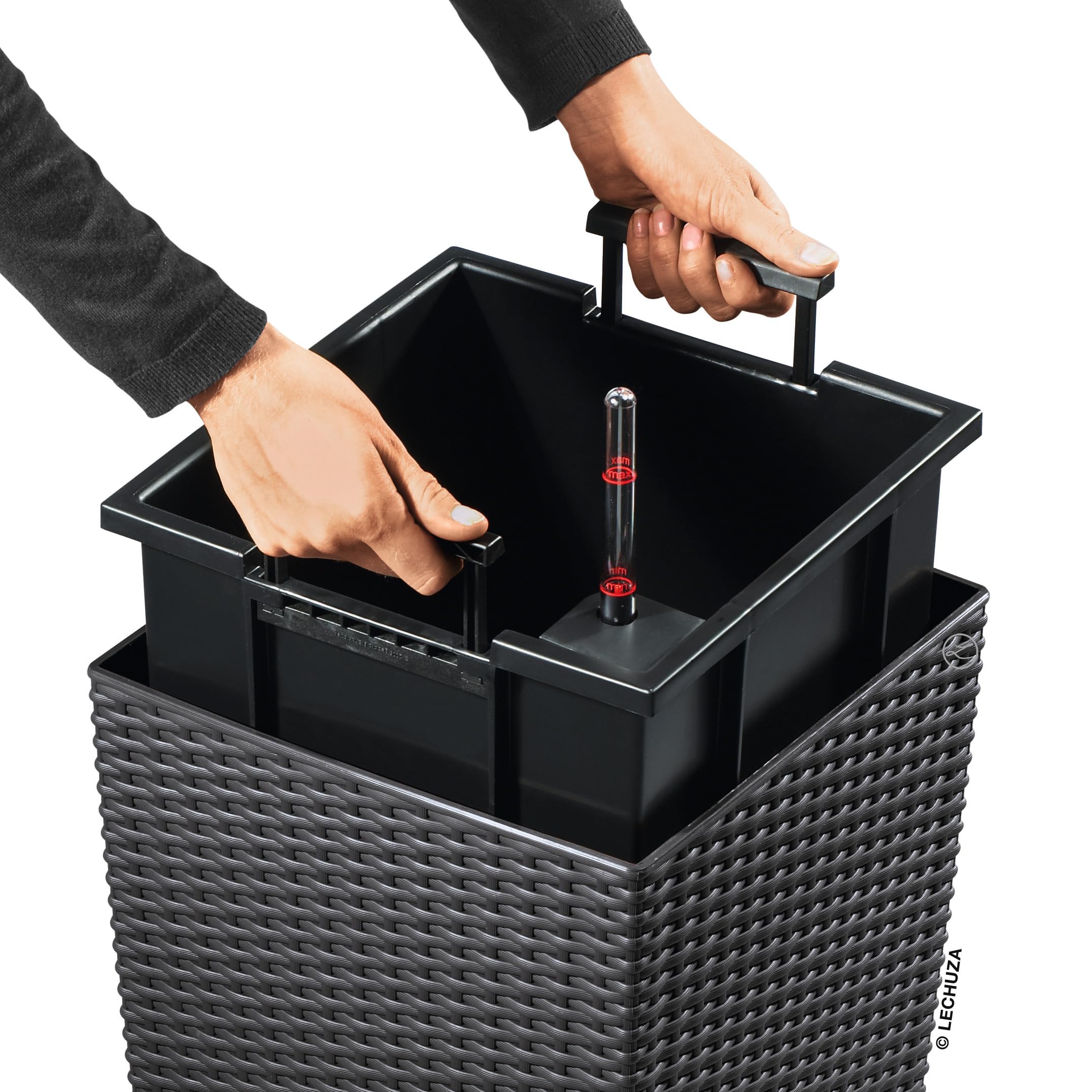 Romantisch rustikal setzt die Pflanzsäule CUBICO Cottage Grünpflanzen, Sträucher und Blumen im Garten gekonnt in Szene. Die umlaufende Flechtstruktur des Pflanzgefässes ist in vielen verschiedenen Farben erhältlich und bringt den Landhaus-Flair in jeden Outdoorbereich. Pflanzen können mit dem wechselbaren Pflanzeinsatz mit versenkbaren Griffen beliebig umgepflanzt werden und versorgen sich anschliessend dank Original LECHUZA-Bewässerungssystem wie von selbst. Die integrierte Überlauffunktion sowie die robuste, wetterfeste Oberfläche macht aus der Pflanzsäule den idealen Allrounder für den Garten. Ergänzt werden kann der CUBICO Cottage mit allen anderen Gefässen aus der LECHUZA Cottage-Serie. Rolluntersetzer sind separat erhältlich und erleichtern das Umdekorieren auf der Terrasse. CUBICO Cottage ist in zwei Grössen und vielen verschiedenen Farben erhältlich. Alle LECHUZA-Pflanzgefässe werden in Deutschland unter höchsten Produktionsstandards hergestellt. Die langlebigen Kunststoffgefässe sind bruchsicher, witterungsbeständig und vollständig recycelbar. Alle schwarzen Pflanzeinsätze sind aus 100% recyceltem Kunststoff hergestellt. Lieferumfang: 1x LECHUZA CUBICO Cottage, inkl. Bewässerungssystem, Pflanzsubstrat LECHUZA-PON als Drainageschicht und wechselbarem Pflanzeinsatz mit versenkbaren Griffen