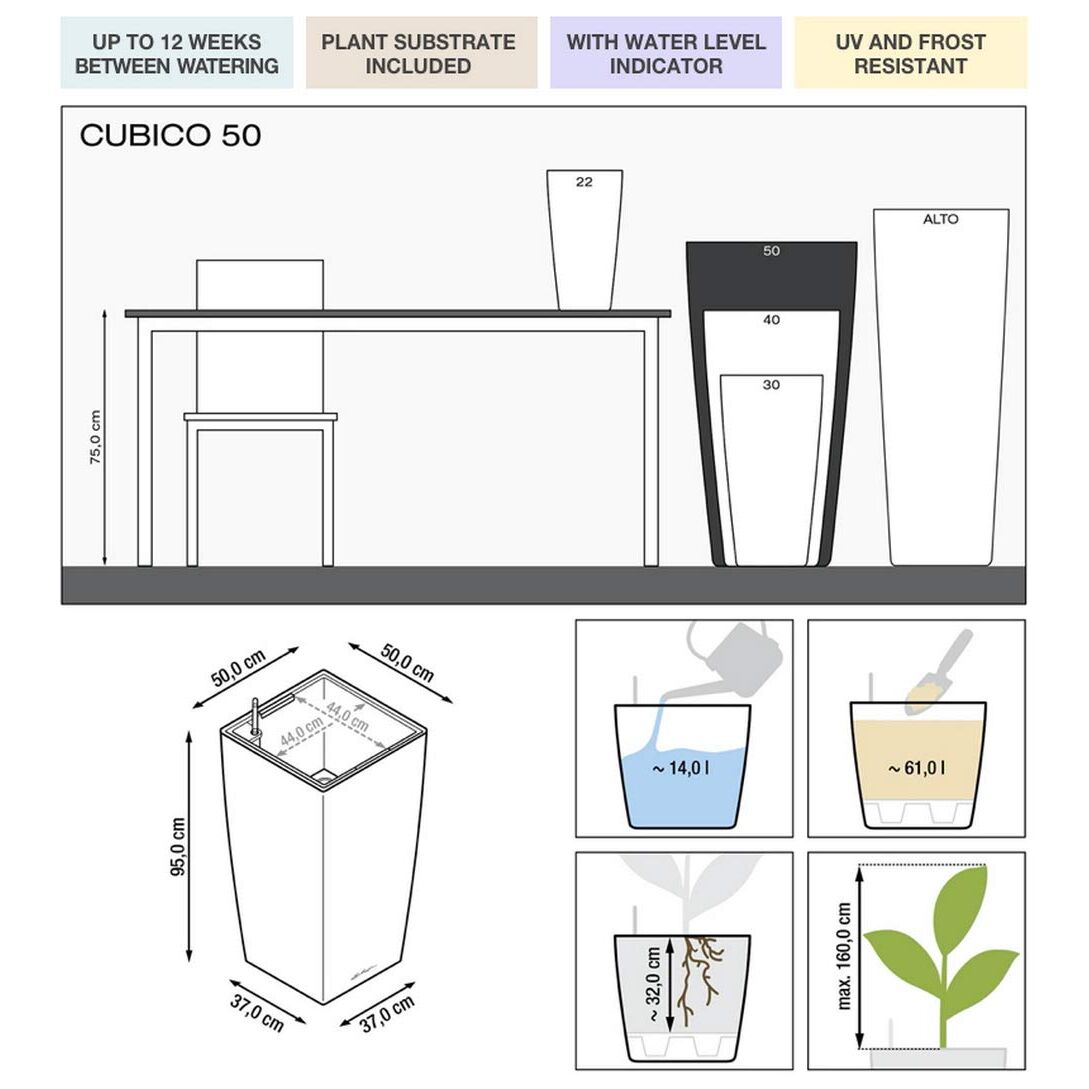 Lechuza Komplett-Set Cubico 50 anthrazit metallic