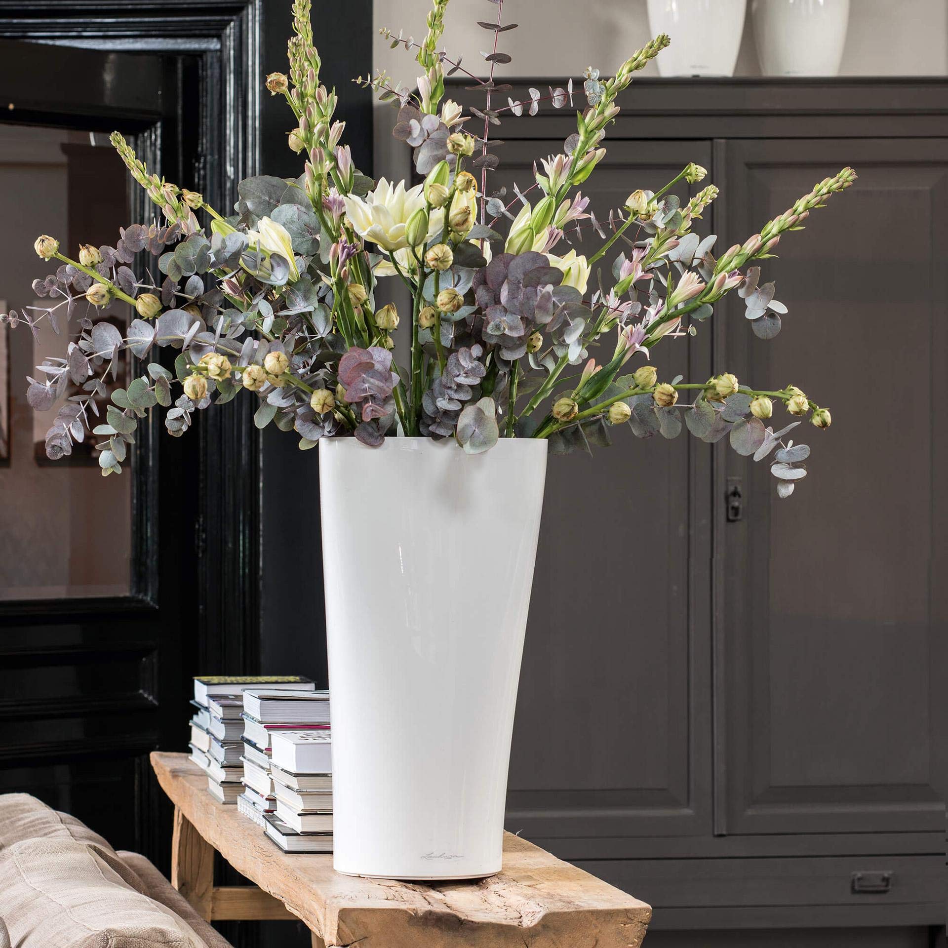 Funktion und Design in einer einzigartigen Dreiecksform vereint – DELTA Premium ist unaufdringlich und dabei ausserordentlich ästhetisch. Die fliessenden, weichen Kanten umrunden das mit Designpreisen ausgezeihnete Pflanzgefäss und werden so zu einem aussergewöhnlichem Deko-Element. Besonders Zimmerpflanzen wie Palmen, Ficus oder Strelizien fühlen sich in der aufregenden Pflanzsäule wohl. Denn im Pflanzgefäss ist das Original LECHUZA-Bewässerungssystem integriert, welches dank grossem Wasserreservoir die Pflanzen stets mit der ausreichenden Menge an Wasser versorgt. Am Wasserstandsanzeiger lässt sich ablesen, wann das Reservoir wieder zu befüllen ist - nie wieder Unter- oder Überwassern der Pflanzen! Das Bepflanzen fällt dank des integrierten Pflanzeisatzes mit versenkbaren Griffrahmen komfortabel einfach aus und erleichtert zudem die Pflanzenpflege. Da der Griffrahmen des Pflanzeinsatzes in Gefässfarbe gehalten ist, fällt er nicht auf und gibt eine harmonische Linie mit dem Gefässrand ab. Damit kombiniert das LECHUZA Pflanzgefäss "DELTA Premium" volle Funktionalität mit hohem Designanspruch. DELTA Premium ist in den Grössen 30 und 40 sowie den hochglänzenden Premium Farben Weiss, Scrarlet Rot und anthrazit metallic erhältlich. Alle LECHUZA-Pflanzgefässe werden in Deutschland unter höchsten Produktionsstandards hergestellt. Die langlebigen Kunststoffgefässe sind bruchsicher, witterungsbeständig und vollständig recycelbar. Alle schwarzen Pflanzeinsätze sind aus 100% recyceltem Kunststoff hergestellt. Lieferumfang: 1x LECHUZA DELTA Premium, inkl. Bewässerungssystem, Pflanzsubstrat LECHUZA-PON als Drainageschicht und wechselbarem Pflanzeinsatz versenkbarem Griffrahmen in Gefässfarbe