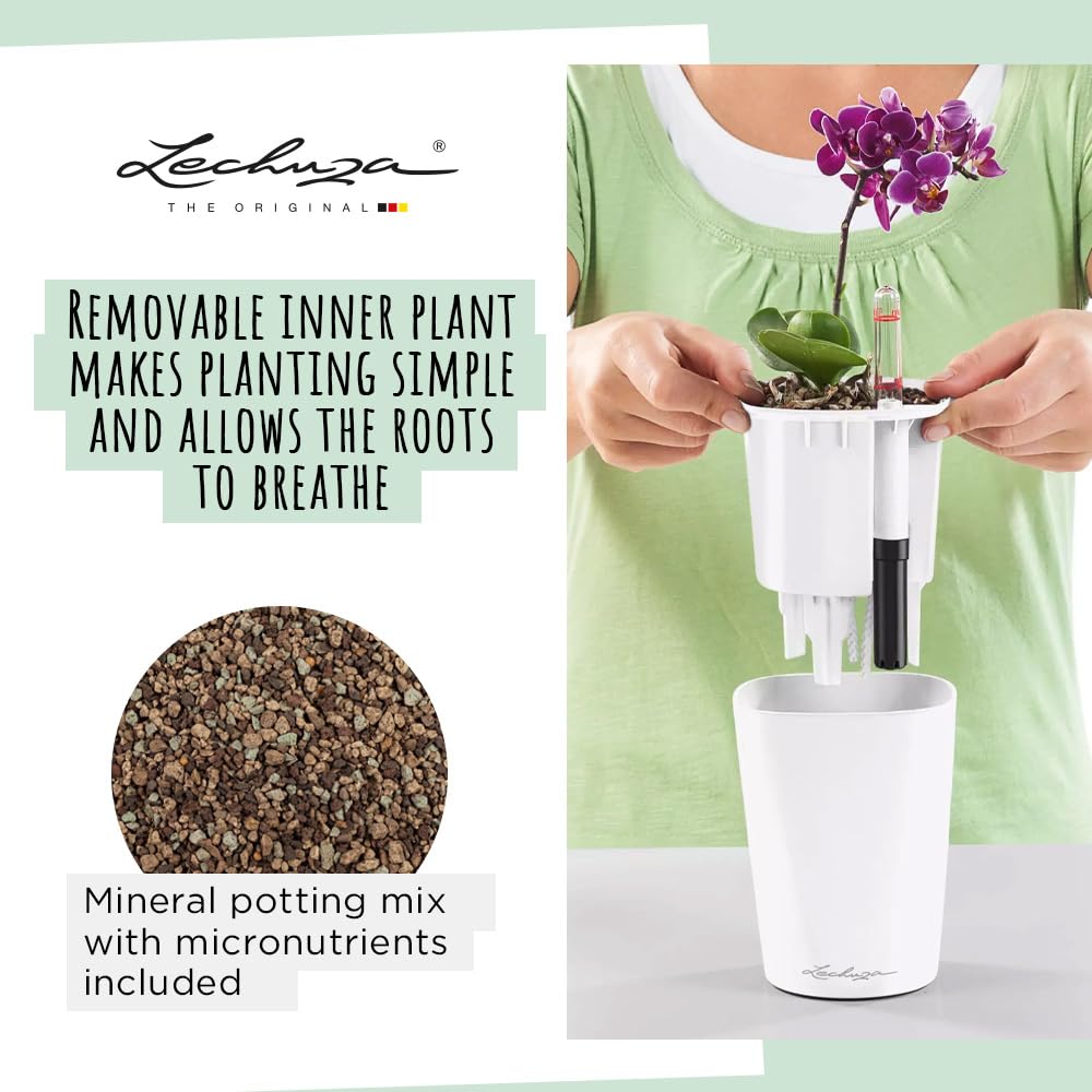 Zarte Pflänzchen und kleine Blumen-Arragaments kommen im DELTINI und MINI-DELTINI hervorragend zur Geltung! Die kleinen Gefässe sind die ideale Geschenkidee für feierliche Anlässe wie Geburtstag, Jubiläum oder Hochzeit. Dank des integrierten Docht-Bewässerungssystems bleiben die Pflanzen länger frisch als ein Blumenstrauss und versorgen sich wie von selbst über das Wasserreservoir mit der ausreichenden Menge an Wasser. Das Docht-Bewässerungssystem funktioniert am Besten mit der ausschliesslichen Verwendung von LECHUZA-Substraten (z.B. LECHUZA-PON), welches bereits im Lieferumfang enthalten ist. Sowohl die elegante, hochglänzende Oberfläche als auch die edle Metallic-Oberfläche passen zu jedem Wohnstil und fügen sich harmonisch in jedes Ambiente ein. DELTINI und MINI-DELTINI finden aufgrund der kleinen Stellfläche überall ihren Platz: Sei es als kleines Gefäss für die Fensterbank oder als Tischgefäss für die gedeckte Tafel. Beide Gefässgrössen gibt es in vielen verschiedenen Hochglanz- und Metallic-Oberflächen. Für jeden Geschmack ist etwas dabei. Alle LECHUZA-Pflanzgefässe werden in Deutschland unter höchsten Produktionsstandards hergestellt. Die langlebigen Kunststoffgefässe sind bruchsicher, witterungsbeständig und vollständig recycelbar. Alle schwarzen Pflanzeinsätze sind aus 100% recyceltem Kunststoff hergestellt. 1x Lechuza DELTINI, inkl. Bewässerungssystem, Pflanzsubstrat LECHUZA-PON und Pflanzeinsatz mit Wasserstandsanzeiger.