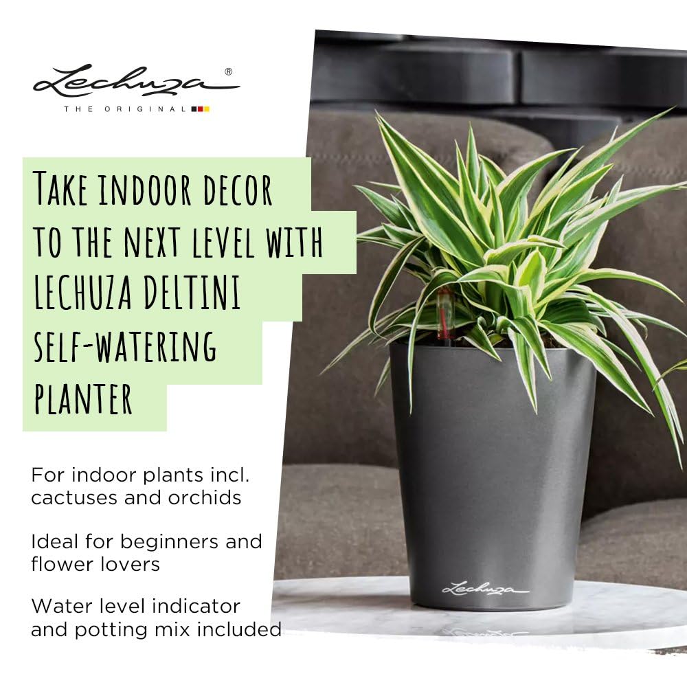 Zarte Pflänzchen und kleine Blumen-Arragaments kommen im DELTINI und MINI-DELTINI hervorragend zur Geltung! Die kleinen Gefässe sind die ideale Geschenkidee für feierliche Anlässe wie Geburtstag, Jubiläum oder Hochzeit. Dank des integrierten Docht-Bewässerungssystems bleiben die Pflanzen länger frisch als ein Blumenstrauss und versorgen sich wie von selbst über das Wasserreservoir mit der ausreichenden Menge an Wasser. Das Docht-Bewässerungssystem funktioniert am Besten mit der ausschliesslichen Verwendung von LECHUZA-Substraten (z.B. LECHUZA-PON), welches bereits im Lieferumfang enthalten ist. Sowohl die elegante, hochglänzende Oberfläche als auch die edle Metallic-Oberfläche passen zu jedem Wohnstil und fügen sich harmonisch in jedes Ambiente ein. DELTINI und MINI-DELTINI finden aufgrund der kleinen Stellfläche überall ihren Platz: Sei es als kleines Gefäss für die Fensterbank oder als Tischgefäss für die gedeckte Tafel. Beide Gefässgrössen gibt es in vielen verschiedenen Hochglanz- und Metallic-Oberflächen. Für jeden Geschmack ist etwas dabei. Alle LECHUZA-Pflanzgefässe werden in Deutschland unter höchsten Produktionsstandards hergestellt. Die langlebigen Kunststoffgefässe sind bruchsicher, witterungsbeständig und vollständig recycelbar. Alle schwarzen Pflanzeinsätze sind aus 100% recyceltem Kunststoff hergestellt. 1x Lechuza DELTINI, inkl. Bewässerungssystem, Pflanzsubstrat LECHUZA-PON und Pflanzeinsatz mit Wasserstandsanzeiger.