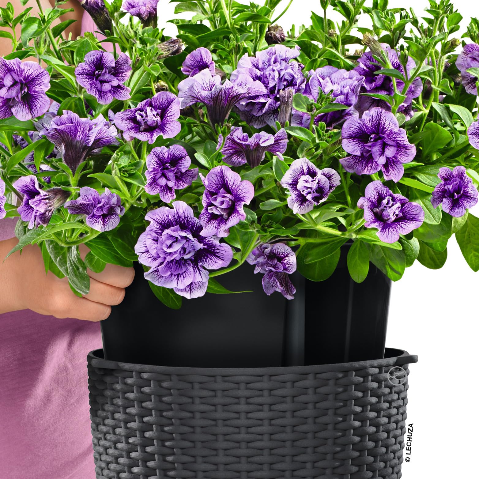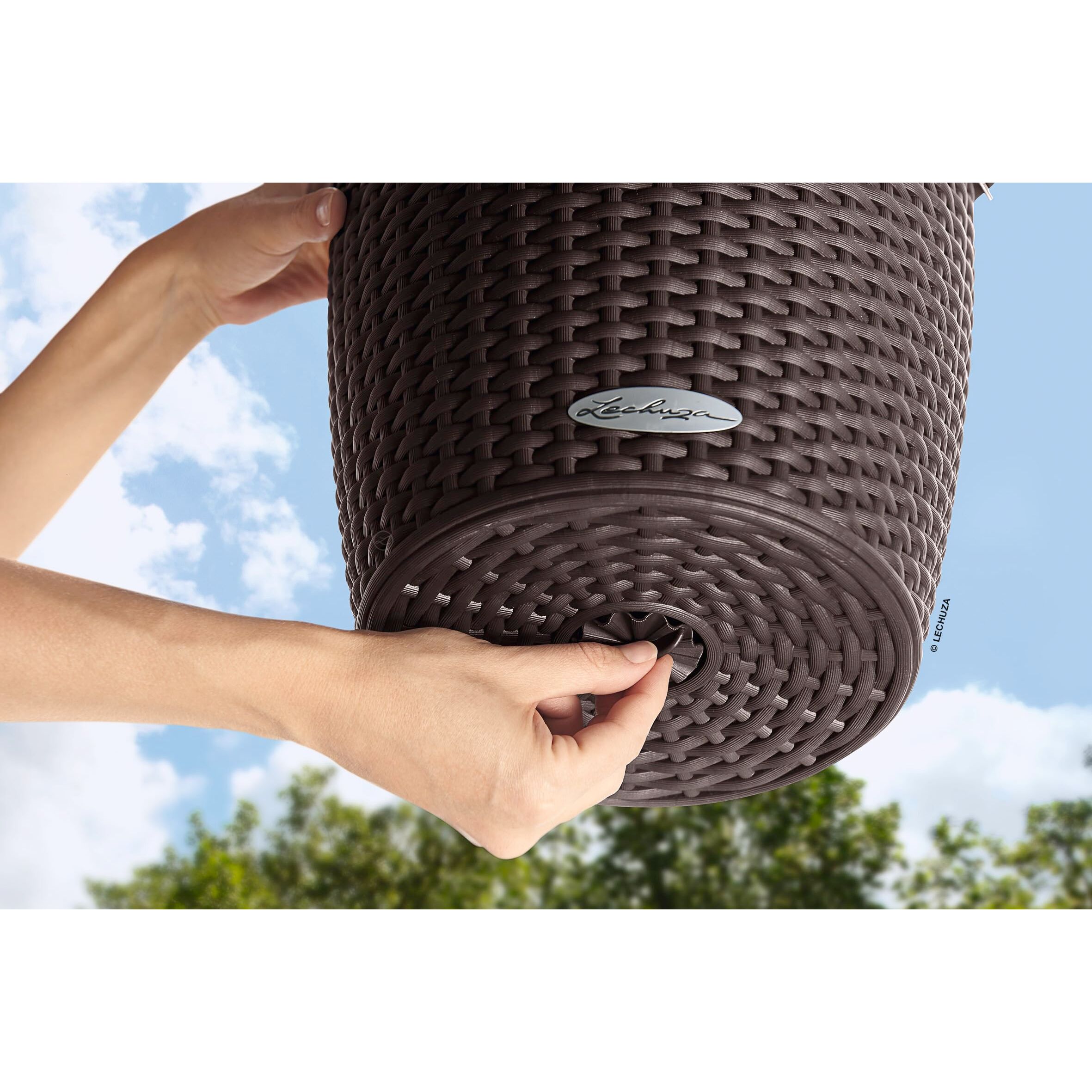 Die Blumenampel NIDO Cottage ist mit der täuschend echten Flechtoptik-Optik ein echter Hingucker und verleiht jedem Ambiente eine natürlich, rustikale Atmosphäre. Dank der bruchsicheren und witterungsbeständigen Oberfläche, sowie der rostfreien Edelstahl-Aufhängung eignet sich NIDO hervorragend für den Aussenbereich und begrünt Gärten, Balkone und Terassen in luftiger Höhe. So kommt der romantische Landhausstil auf Augenhöhe! Im Pflanzgefäss selbst ist das Original LECHUZA-Bewässerungssystem integriert, welches sich zuverlässig um das Wohlergehen der Pflanzen kümmert und sie danke grossem Wasserreservoir auch an heissen Tagen mit Wasser versorgt. Überschüssiges Regenwasser kann über den intelligent versteckten Regenablauf an der Gefässunterseite abfliessen, wodurch Staunässe vermieden wird. Die Hängeampel kann dank des herausnehmbaren Pflanzeinsatzes ganz komfortabel auf dem Tisch oder dem Boden bepflanzt werden, wodurch auch die Pflanzenpflege einfach und schnell erfolgen kann. Ein wahrer Hingucker für den all diejenigen, welche die natürliche Flecht-Optik lieben. Tipp: Die Edelstahl-Aufhängung kann nach Belieben entfernt werden, sodass sich NIDO auch als Tischgefäss eignet. Die Blumenampel ist in zwei Grössen und vielen verschiedenen Farben wie beispielsweise Flieder, Lichtgrau, Sandbraun, Anthrazit oder Weiss erhältlich und lässt sich perfekt mit anderen Gefässen der LECHUA Cottage-Familie kombinieren. Alle LECHUZA-Pflanzgefässe werden in Deutschland unter höchsten Produktionsstandards hergestellt. Die langlebigen Kunststoffgefässe sind bruchsicher, witterungsbeständig und vollständig recycelbar. Alle schwarzen Pflanzeinsätze sind aus 100% recyceltem Kunststoff hergestellt. Lieferumfang: 1x LECHUZA NIDO Cottage, Inkl. Bewässerungssystem, LECHUZA-PON als Drainageschicht, herausnehmbarem Pflanzeinsatz und Edelstahl-Aufhängung