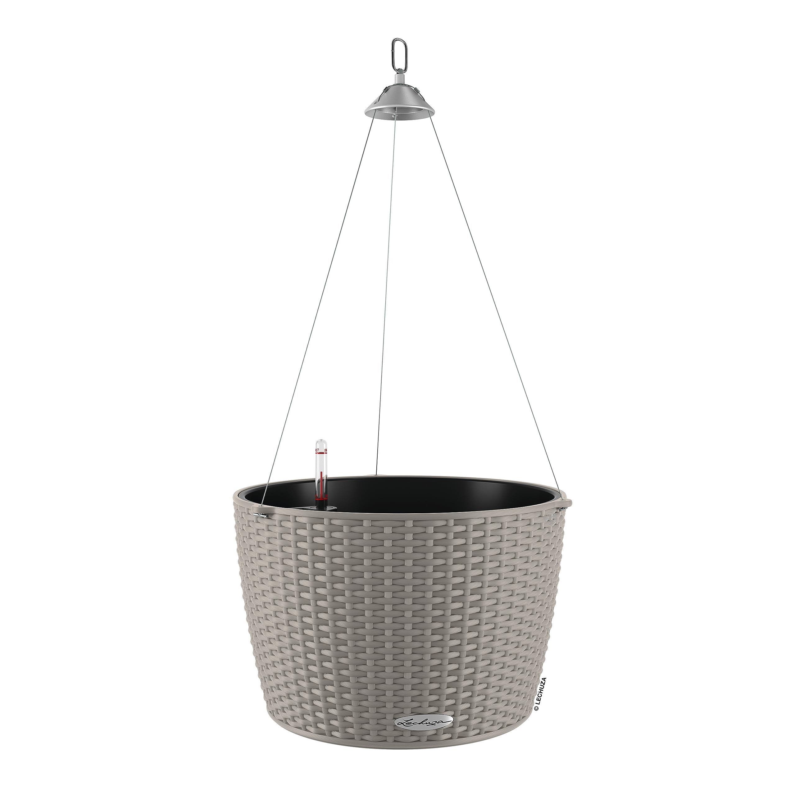 Die Blumenampel NIDO Cottage ist mit der täuschend echten Flechtoptik-Optik ein echter Hingucker und verleiht jedem Ambiente eine natürlich, rustikale Atmosphäre. Dank der bruchsicheren und witterungsbeständigen Oberfläche, sowie der rostfreien Edelstahl-Aufhängung eignet sich NIDO hervorragend für den Aussenbereich und begrünt Gärten, Balkone und Terassen in luftiger Höhe. So kommt der romantische Landhausstil auf Augenhöhe! Im Pflanzgefäss selbst ist das Original LECHUZA-Bewässerungssystem integriert, welches sich zuverlässig um das Wohlergehen der Pflanzen kümmert und sie danke grossem Wasserreservoir auch an heissen Tagen mit Wasser versorgt. Überschüssiges Regenwasser kann über den intelligent versteckten Regenablauf an der Gefässunterseite abfliessen, wodurch Staunässe vermieden wird. Die Hängeampel kann dank des herausnehmbaren Pflanzeinsatzes ganz komfortabel auf dem Tisch oder dem Boden bepflanzt werden, wodurch auch die Pflanzenpflege einfach und schnell erfolgen kann. Ein wahrer Hingucker für den all diejenigen, welche die natürliche Flecht-Optik lieben. Tipp: Die Edelstahl-Aufhängung kann nach Belieben entfernt werden, sodass sich NIDO auch als Tischgefäss eignet. Die Blumenampel ist in zwei Grössen und vielen verschiedenen Farben wie beispielsweise Flieder, Lichtgrau, Sandbraun, Anthrazit oder Weiss erhältlich und lässt sich perfekt mit anderen Gefässen der LECHUA Cottage-Familie kombinieren. Alle LECHUZA-Pflanzgefässe werden in Deutschland unter höchsten Produktionsstandards hergestellt. Die langlebigen Kunststoffgefässe sind bruchsicher, witterungsbeständig und vollständig recycelbar. Alle schwarzen Pflanzeinsätze sind aus 100% recyceltem Kunststoff hergestellt. Lieferumfang: 1x LECHUZA NIDO Cottage, Inkl. Bewässerungssystem, LECHUZA-PON als Drainageschicht, herausnehmbarem Pflanzeinsatz und Edelstahl-Aufhängung