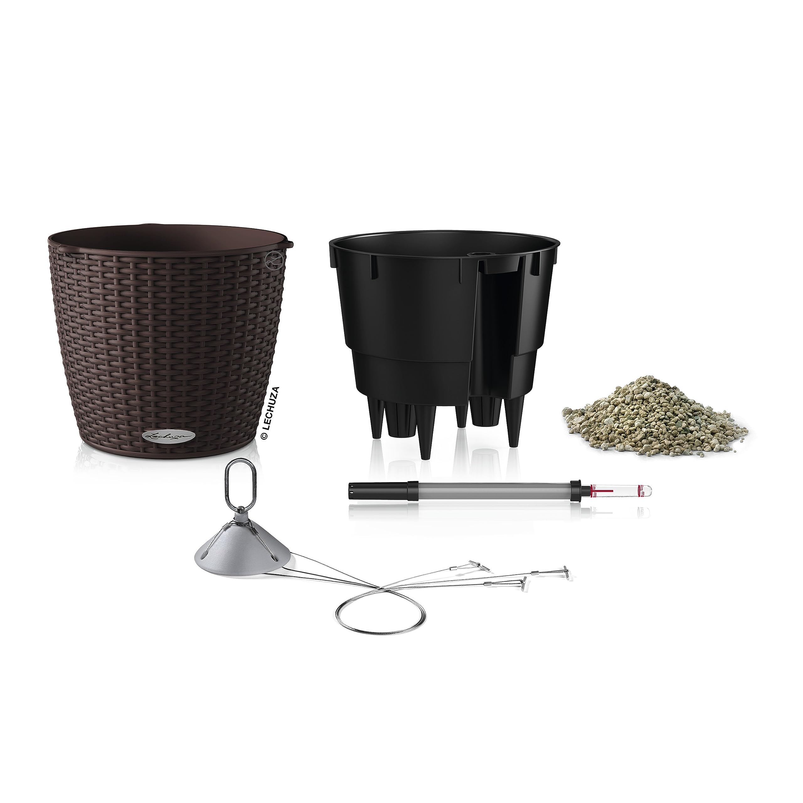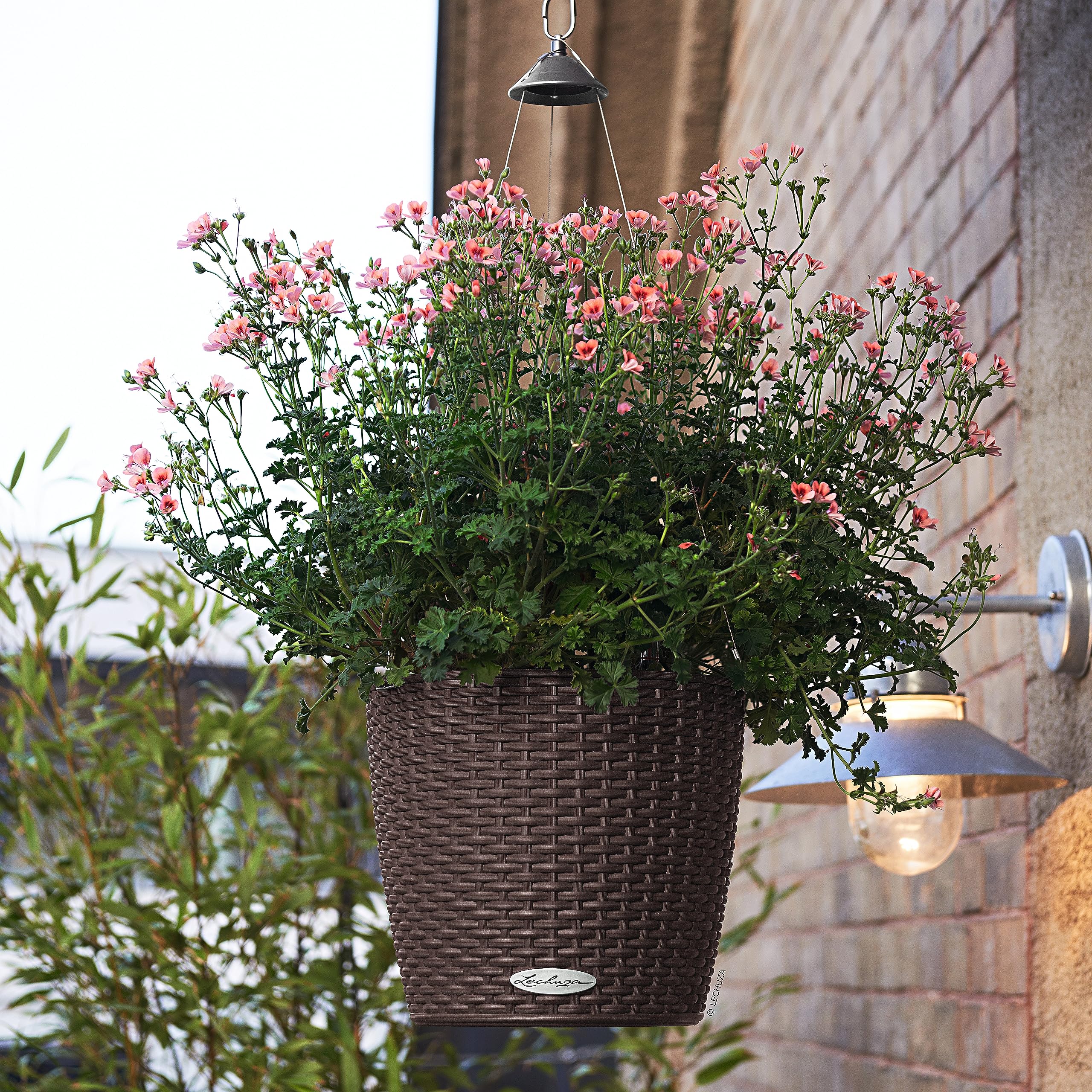 Die Blumenampel NIDO Cottage ist mit der täuschend echten Flechtoptik-Optik ein echter Hingucker und verleiht jedem Ambiente eine natürlich, rustikale Atmosphäre. Dank der bruchsicheren und witterungsbeständigen Oberfläche, sowie der rostfreien Edelstahl-Aufhängung eignet sich NIDO hervorragend für den Aussenbereich und begrünt Gärten, Balkone und Terassen in luftiger Höhe. So kommt der romantische Landhausstil auf Augenhöhe! Im Pflanzgefäss selbst ist das Original LECHUZA-Bewässerungssystem integriert, welches sich zuverlässig um das Wohlergehen der Pflanzen kümmert und sie danke grossem Wasserreservoir auch an heissen Tagen mit Wasser versorgt. Überschüssiges Regenwasser kann über den intelligent versteckten Regenablauf an der Gefässunterseite abfliessen, wodurch Staunässe vermieden wird. Die Hängeampel kann dank des herausnehmbaren Pflanzeinsatzes ganz komfortabel auf dem Tisch oder dem Boden bepflanzt werden, wodurch auch die Pflanzenpflege einfach und schnell erfolgen kann. Ein wahrer Hingucker für den all diejenigen, welche die natürliche Flecht-Optik lieben. Tipp: Die Edelstahl-Aufhängung kann nach Belieben entfernt werden, sodass sich NIDO auch als Tischgefäss eignet. Die Blumenampel ist in zwei Grössen und vielen verschiedenen Farben wie beispielsweise Flieder, Lichtgrau, Sandbraun, Anthrazit oder Weiss erhältlich und lässt sich perfekt mit anderen Gefässen der LECHUA Cottage-Familie kombinieren. Alle LECHUZA-Pflanzgefässe werden in Deutschland unter höchsten Produktionsstandards hergestellt. Die langlebigen Kunststoffgefässe sind bruchsicher, witterungsbeständig und vollständig recycelbar. Alle schwarzen Pflanzeinsätze sind aus 100% recyceltem Kunststoff hergestellt. Lieferumfang: 1x LECHUZA NIDO Cottage, Inkl. Bewässerungssystem, LECHUZA-PON als Drainageschicht, herausnehmbarem Pflanzeinsatz und Edelstahl-Aufhängung