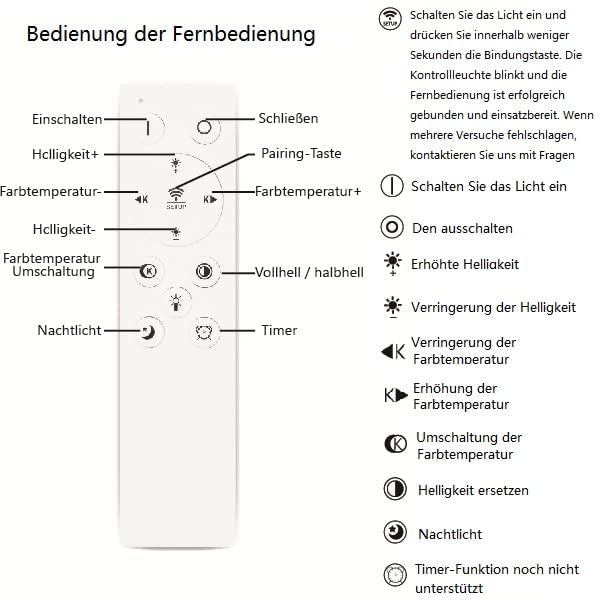 Für die Steuerung der App folgen Sie bitte dem QR-Code an der Seite der Fernbedienung oder fragen Sie uns nach einem QR-Code-Bild zum Herunterladen.