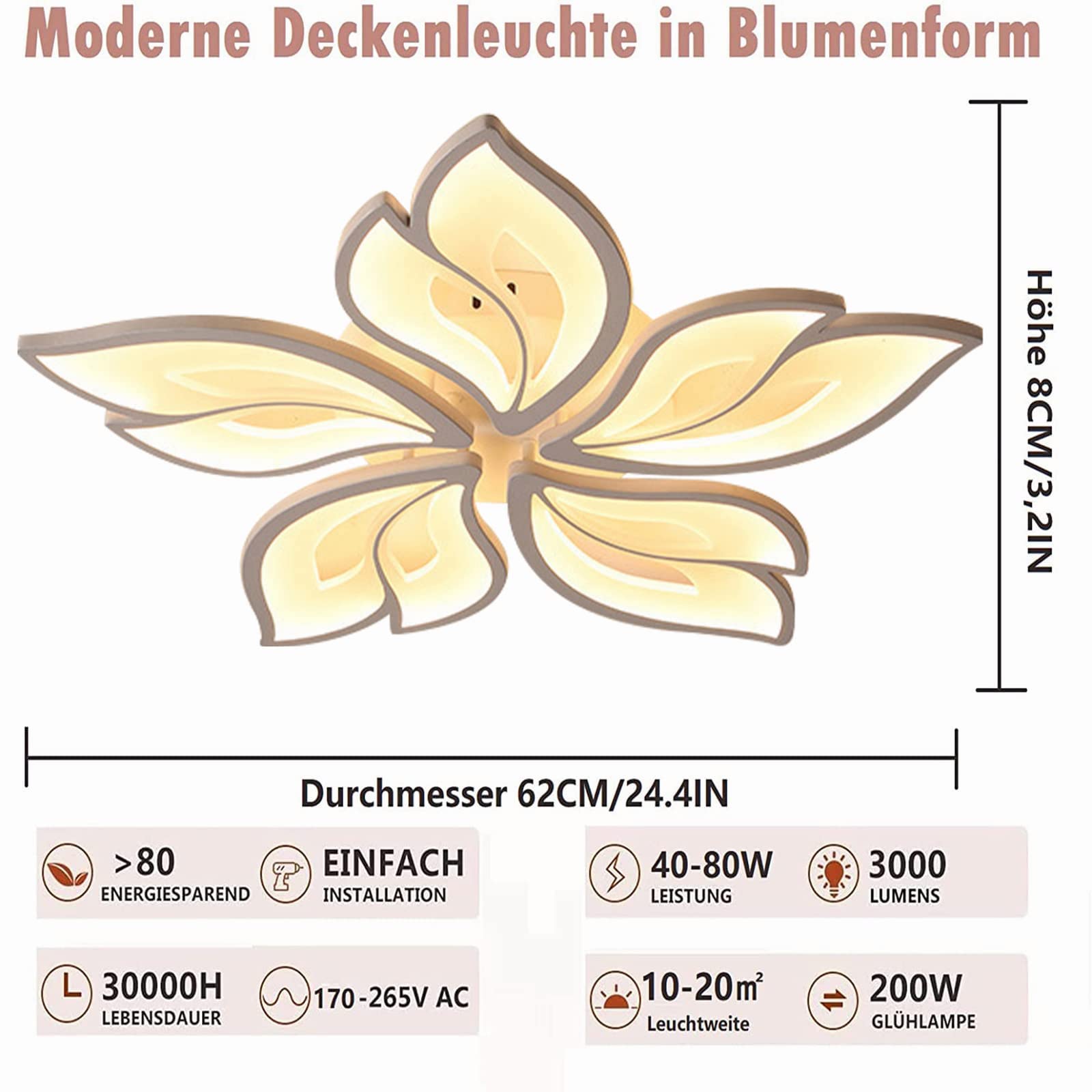 LED Deckenleuchte Dimmbar, 40W-80W Deckenlampe LED Wohnzimmerlampe mit Fernbedienung APP Farbwechsel - Moderne Wohnzimmerlampe Deckenleuchte Energie Sparen Dimming Deckenbeleuchtung Schlafzimmerlampe