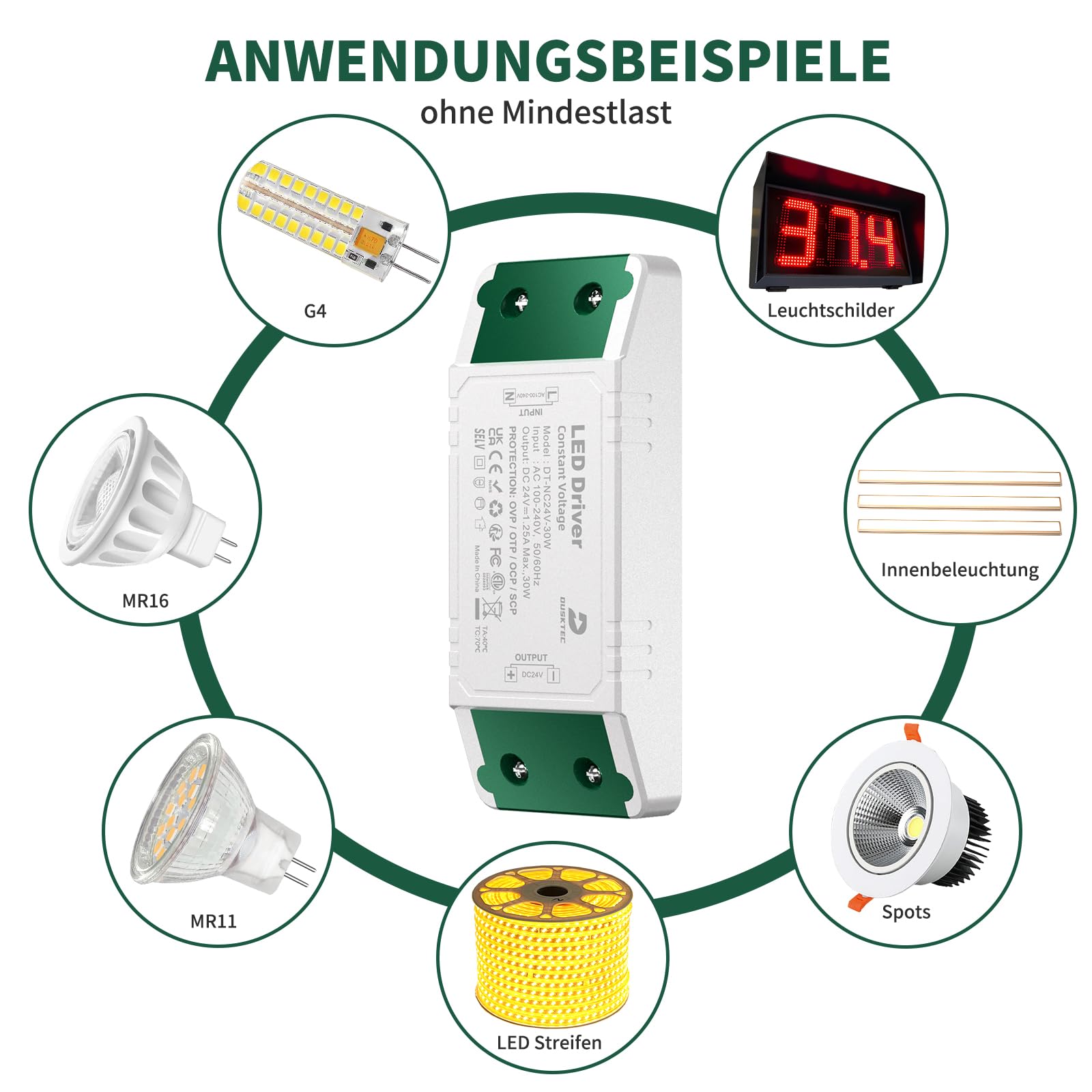 DUSKTEC Trafo 230V auf 24V DC, LED Transformator 24V, LED Netzteil Treiber 30W, AC/DC Schaltnetzteil, Konstantspannungs Niedervolttrafo für MR16 GU5.3 MR11 G4 Lampen Streifen