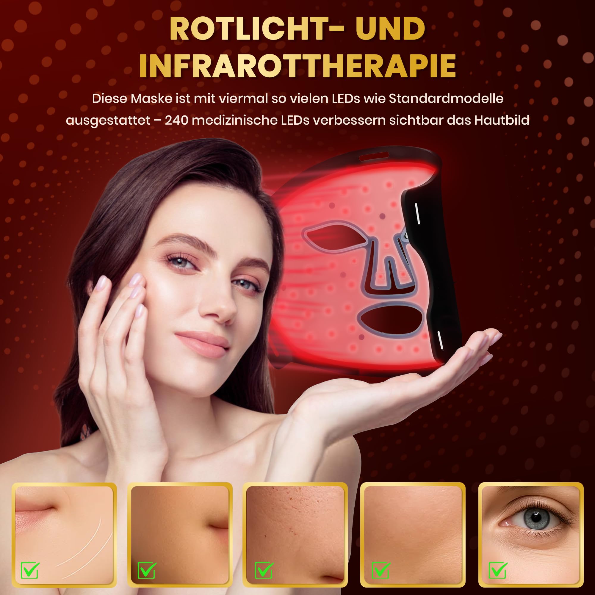 LED-Rotlicht-Gesichtsmaske mit 4 Farben, 240 LEDs, wiederaufladbare Lichttherapie fuer Anti-Aging & Hautverjuengung (Schwarz)