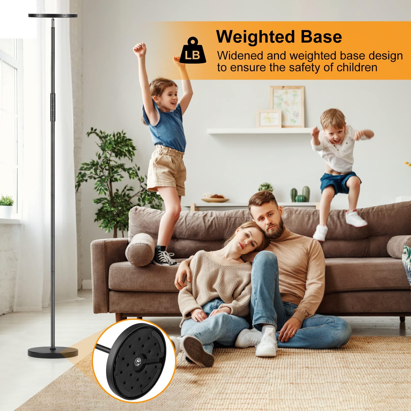 ???3000LM Superhelle Stehlampe?Die Hauptfackel Stehlampe besteht aus 36W LED-Lampe einschliesslich 132PCS Lampenperlen, die einer 300W Glühbirne entsprechen, was Ihre Stromrechnungen erheblich spart. Das zeitlose, minimalistische Design bringt Raffinesse in Ihr Wohnzimmer, Schlafzimmer und Büro.;???600LM Einstellbare Leselampe?Die 7W einstellbare Schwanenhals Sub-Lampe macht die Mängel der Hauptlampe, die nicht nach unten beleuchtet werden kann, seine Farbtemperaturen und Helligkeit Arten, Kontrollmethoden, etc., im Allgemeinen im Einklang mit der Hauptlampe, ideal zum Lesen, Arbeiten, Krankenpflege, etc.;???Fernbedienung & Touch-Steuerung?Beide Steuerungsmethoden ermöglichen alle Operationen. Inklusive 4 Farbtemperaturen: 2700K, 4000K, 5000K und 6500K, und 10-fache Helligkeit. Sie können es auch stufenlos von warmem Weiss zu kühlem Weiss dimmen, oder die Helligkeit von 5% bis 100% stufenlos dimmen, und alle Ihre Einstellungen können gespeichert werden. Wir haben auch einen "Nachtmodus" und einen "Lesemodus" in die Fernbedienung integriert, um Ihre Beleuchtungsbedürfnisse bequemer zu erfüllen.;???Verstellbarer Lampenkopf & Sicherer Sockel?Die Stehlampe kann um 350° horizontal gedreht und um 180° vertikal geschwenkt werden, so dass Sie fast jede Ecke Ihres Zimmers beleuchten können. Der 2,5kg schwere Lampenfuss hält die Stehlampe stabil und sicher genug, um nicht um Ihre Kinder oder Haustiere zu kippen.;???Hochwertiges Material & Einfache Montage?Das Lampengehäuse ist aus hochwertigem Acryl gefertigt, um weiches Licht und Augenschutz zu emittieren, und der robuste Metallstab macht die Lampe haltbarer. Es ist einfach zu montieren, es dauert weniger als 5 Minuten und alle Lampenteile können zusammengebaut werden. Wenn Sie irgendwelche Fragen haben, kontaktieren Sie uns bitte